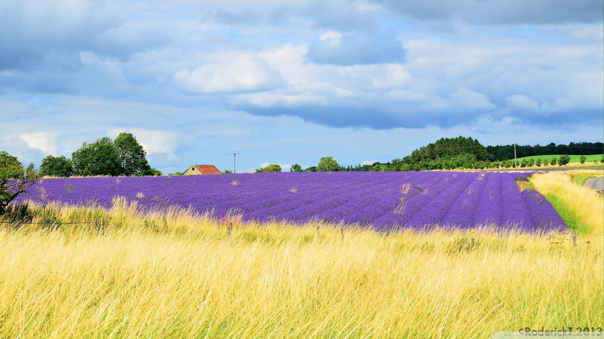 Желтое поле переходит в цветы лаванды - 1920x1080
