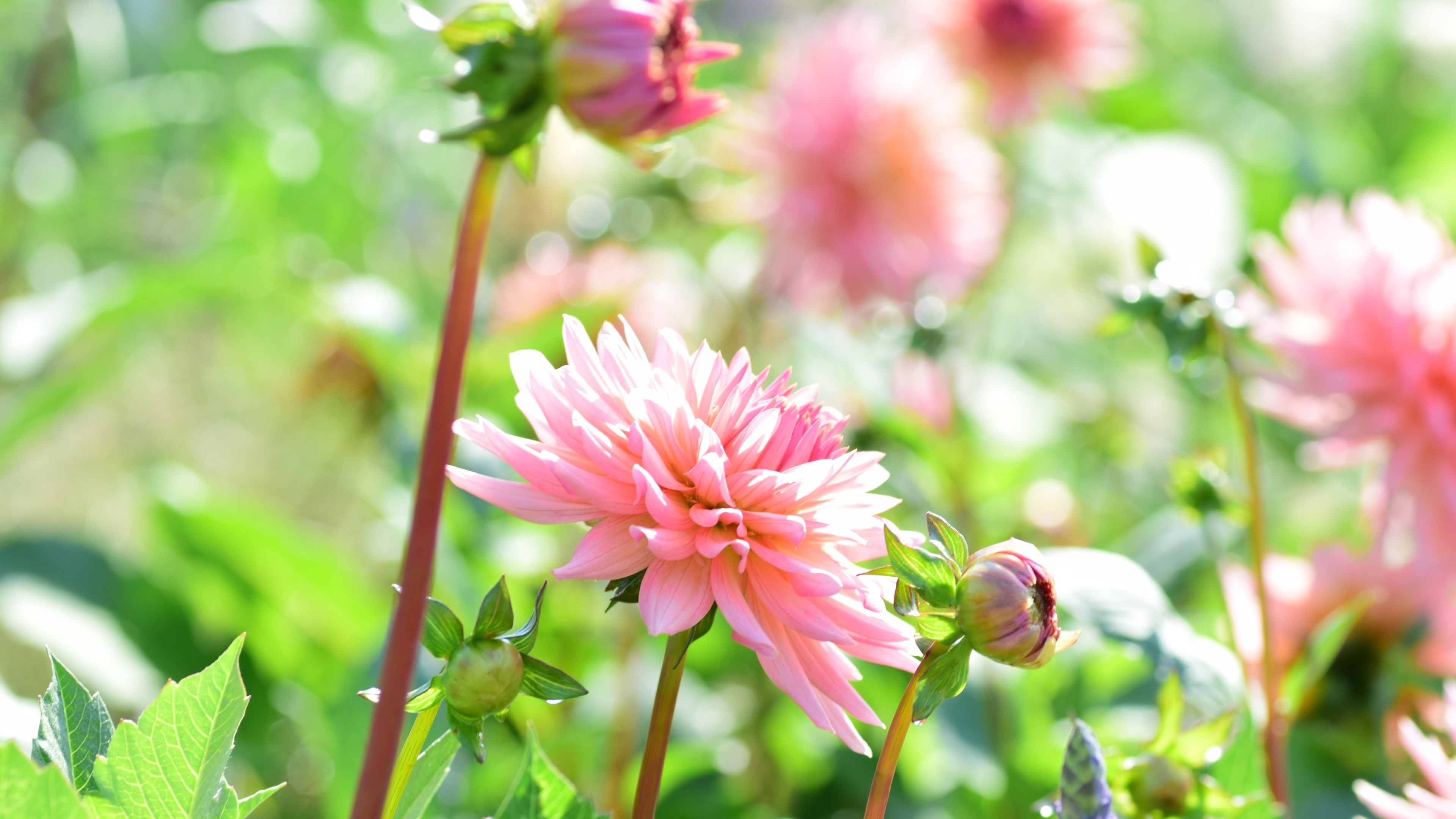 Пышная розовая георгина в саду - 3840x2160