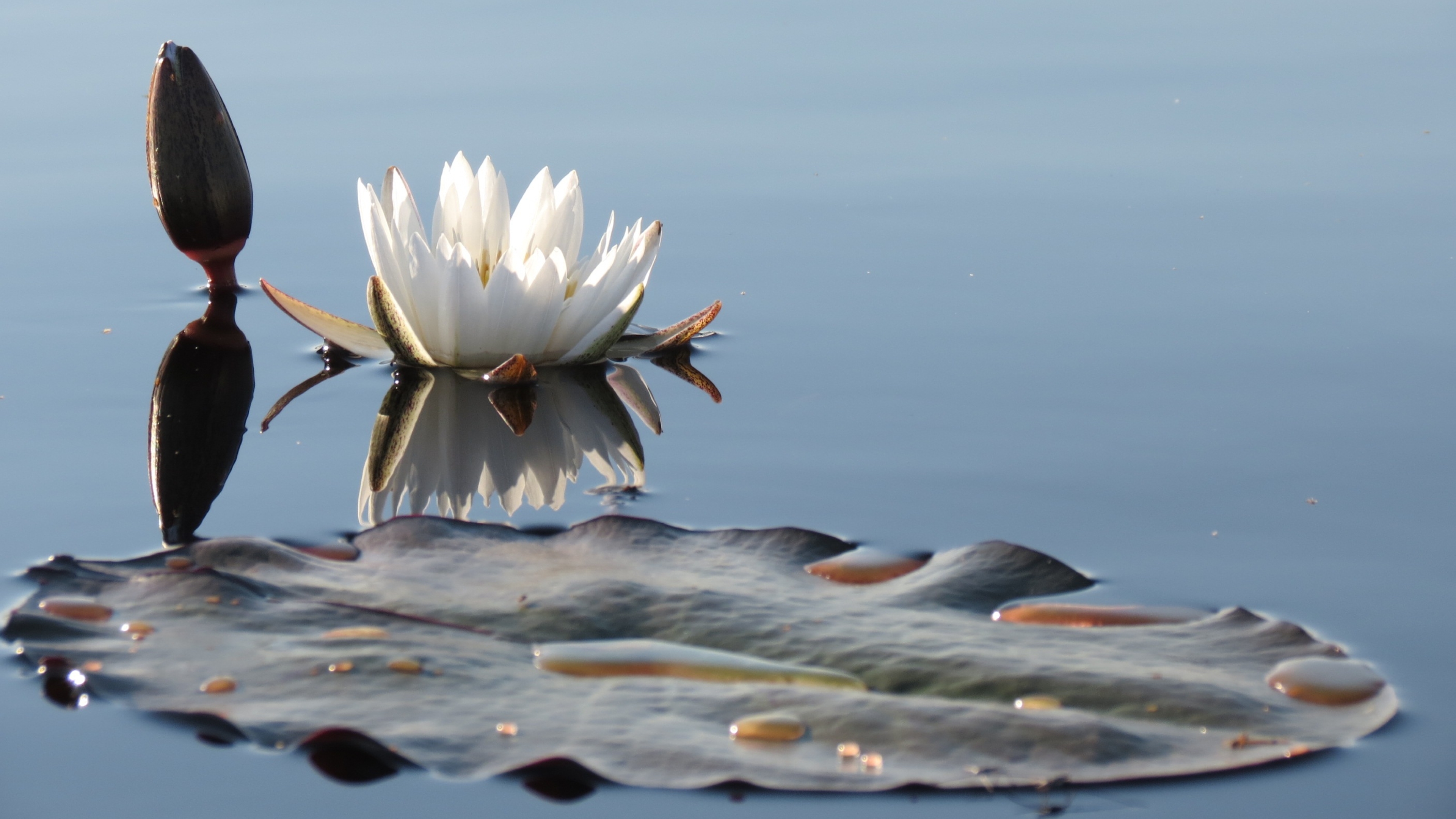 Белый нежный цветок лотоса в водоеме - 3840x2160