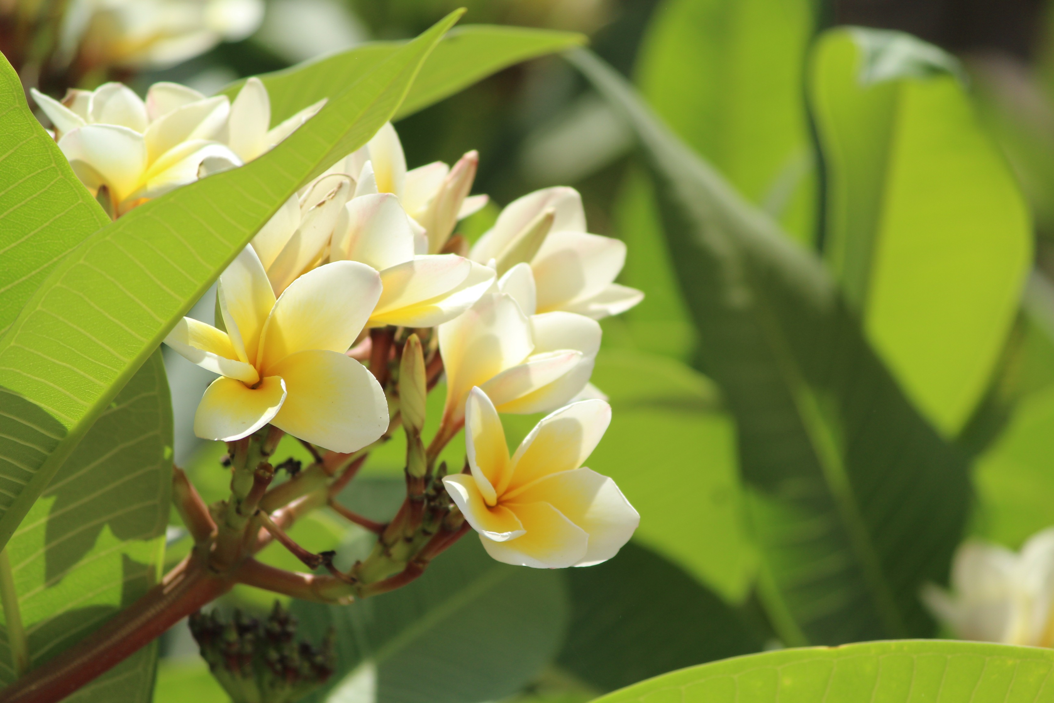 Нежные цветы тропического дерева плюмерия - 3456x2304