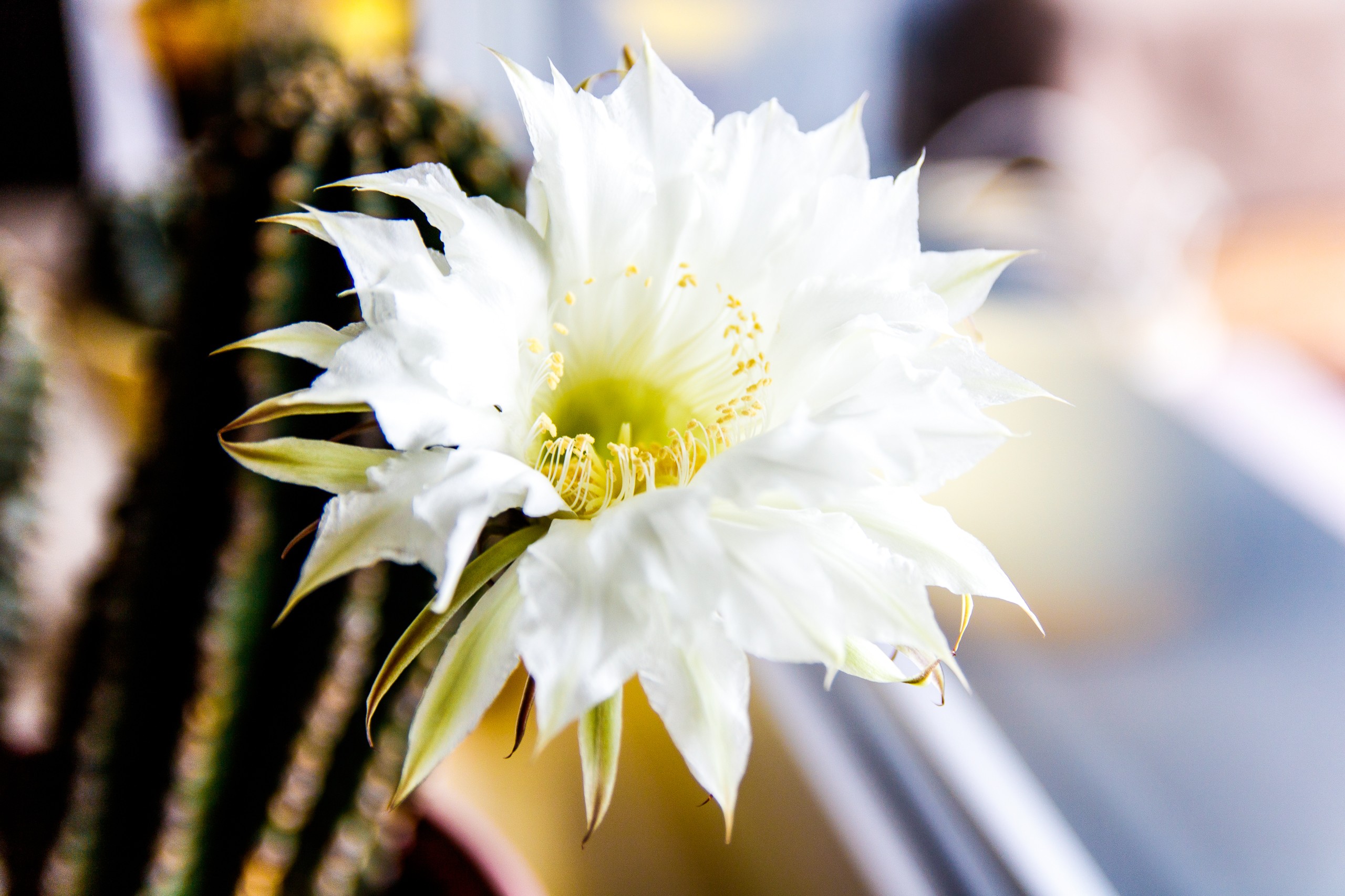 Зеленый колючий кактус с белым цветком - 2560x1707