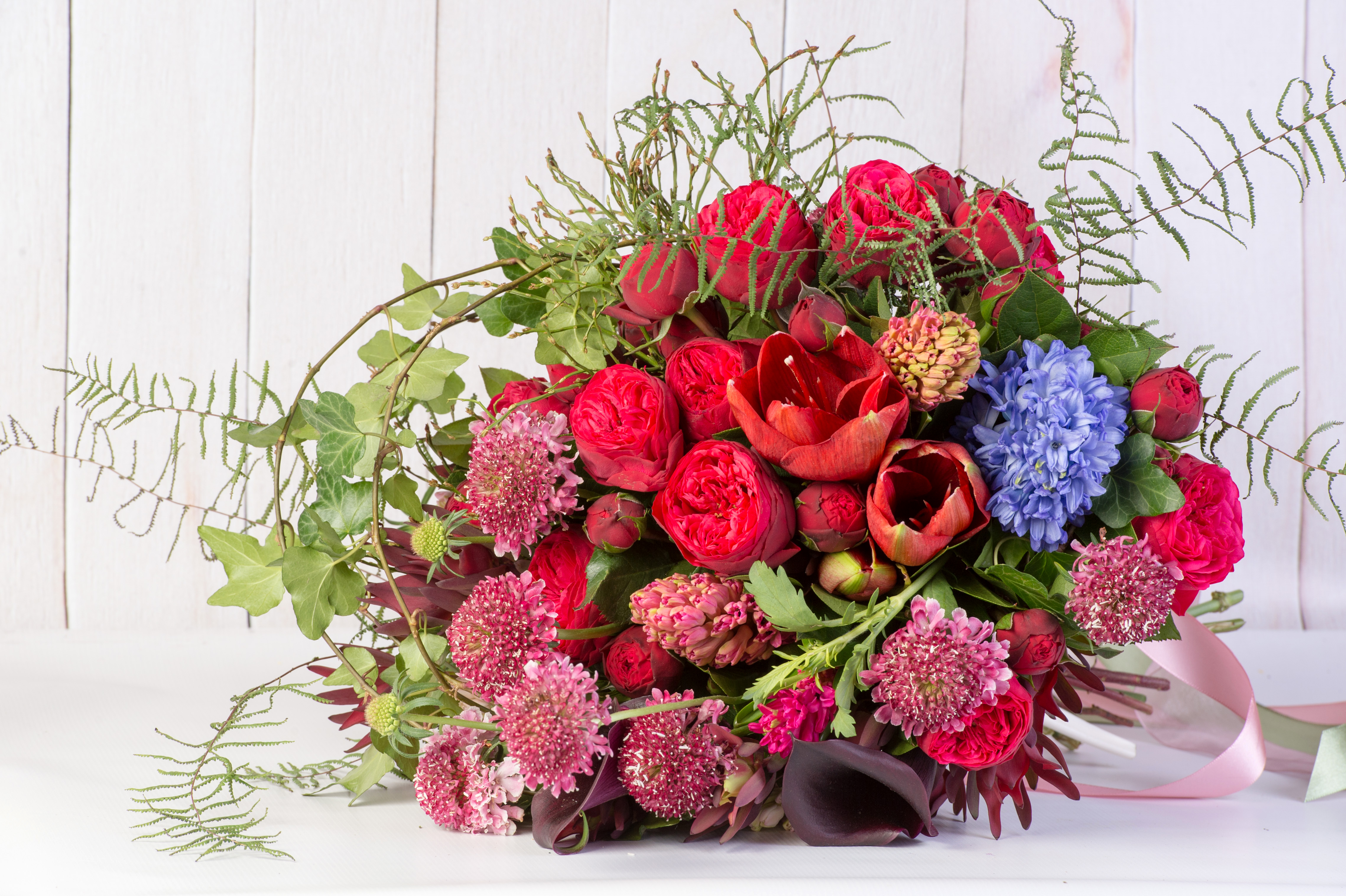 Большой красивый букет перевязанный розовой лентой - 4555x3032