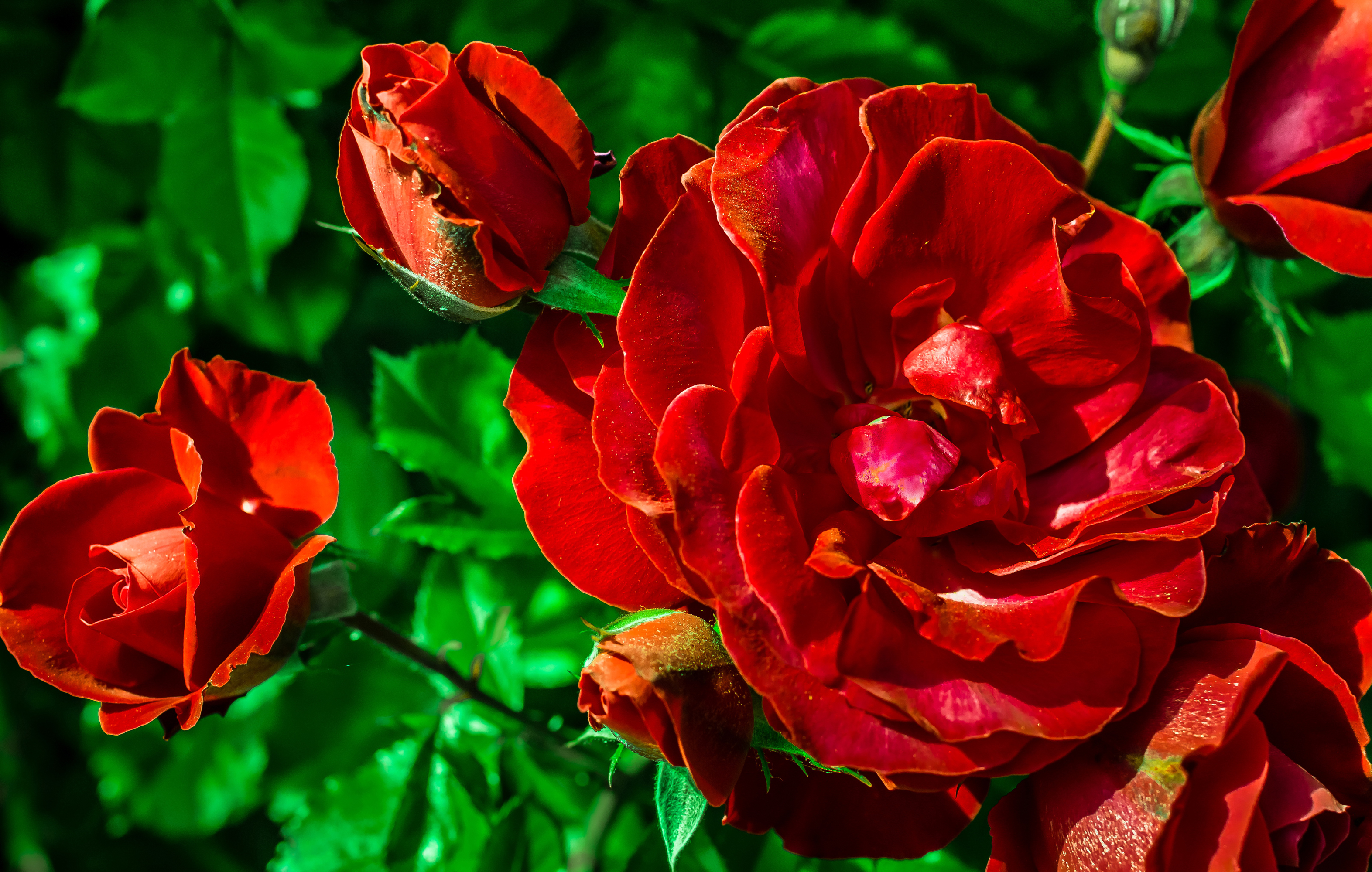Красивые красные розы с бутонами вблизи - 3145x2000