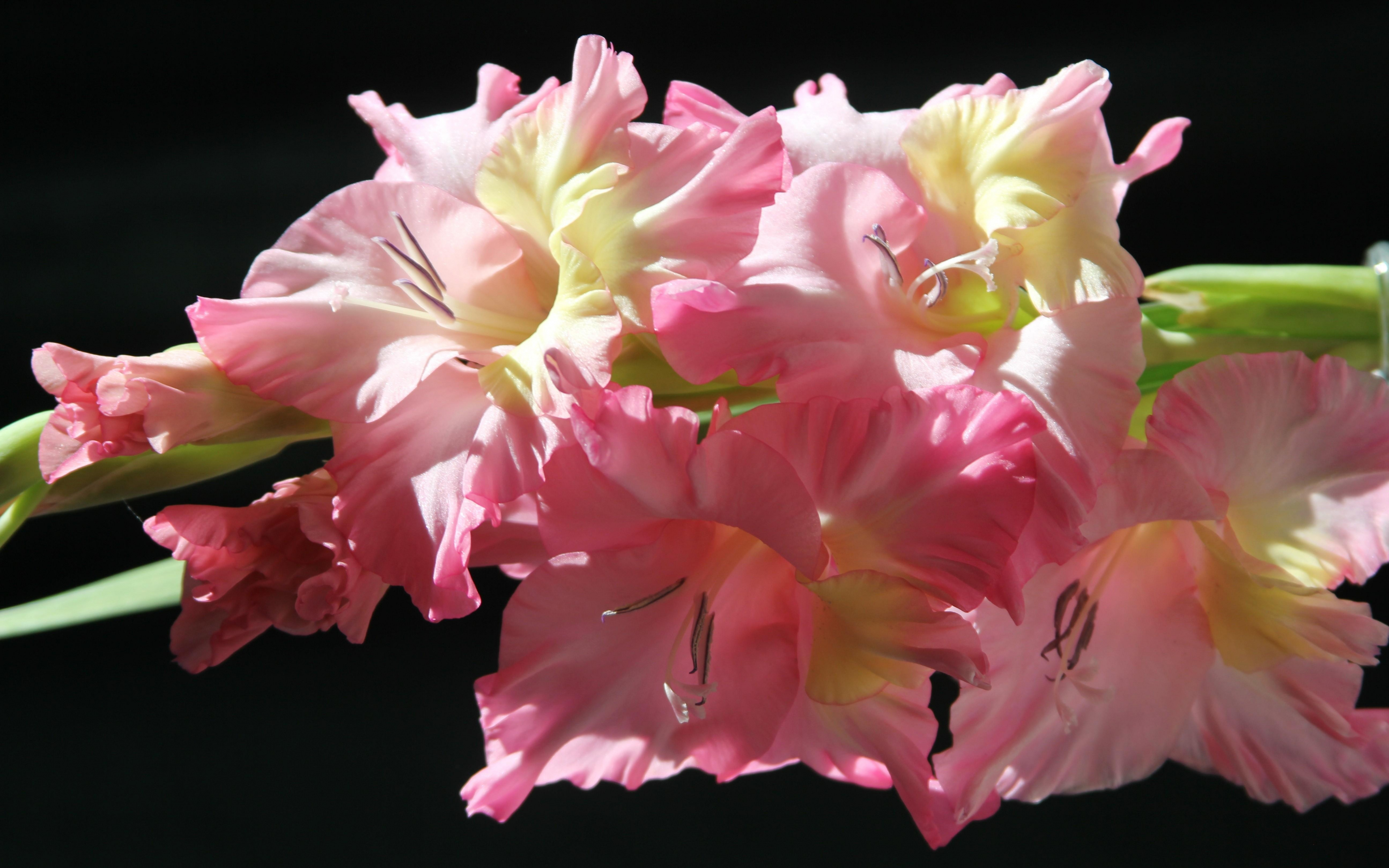 Нежные розовые гладиолусы на черном фоне - 3840x2400
