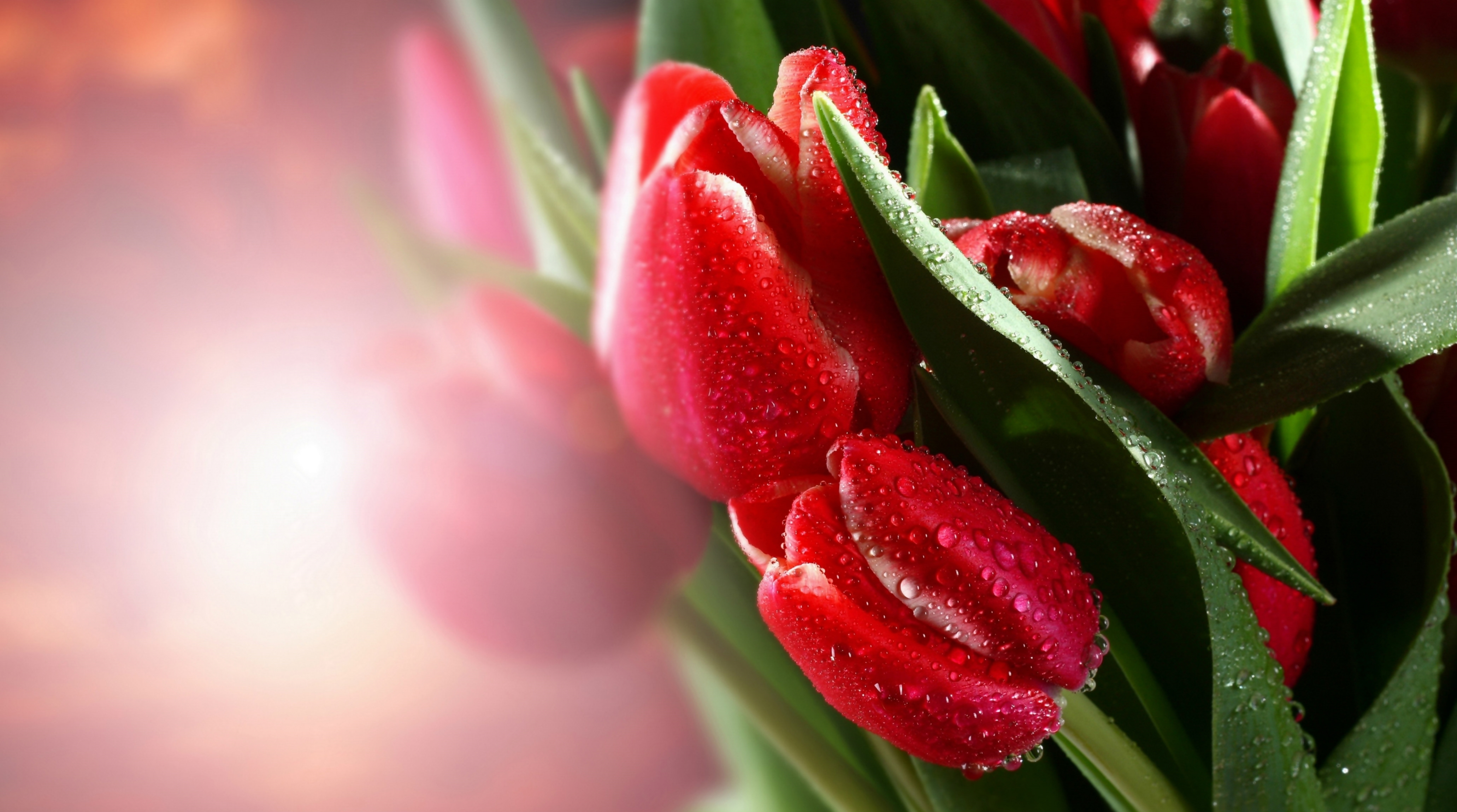 Красивые красные тюльпаны с каплях воды - 4124x2300