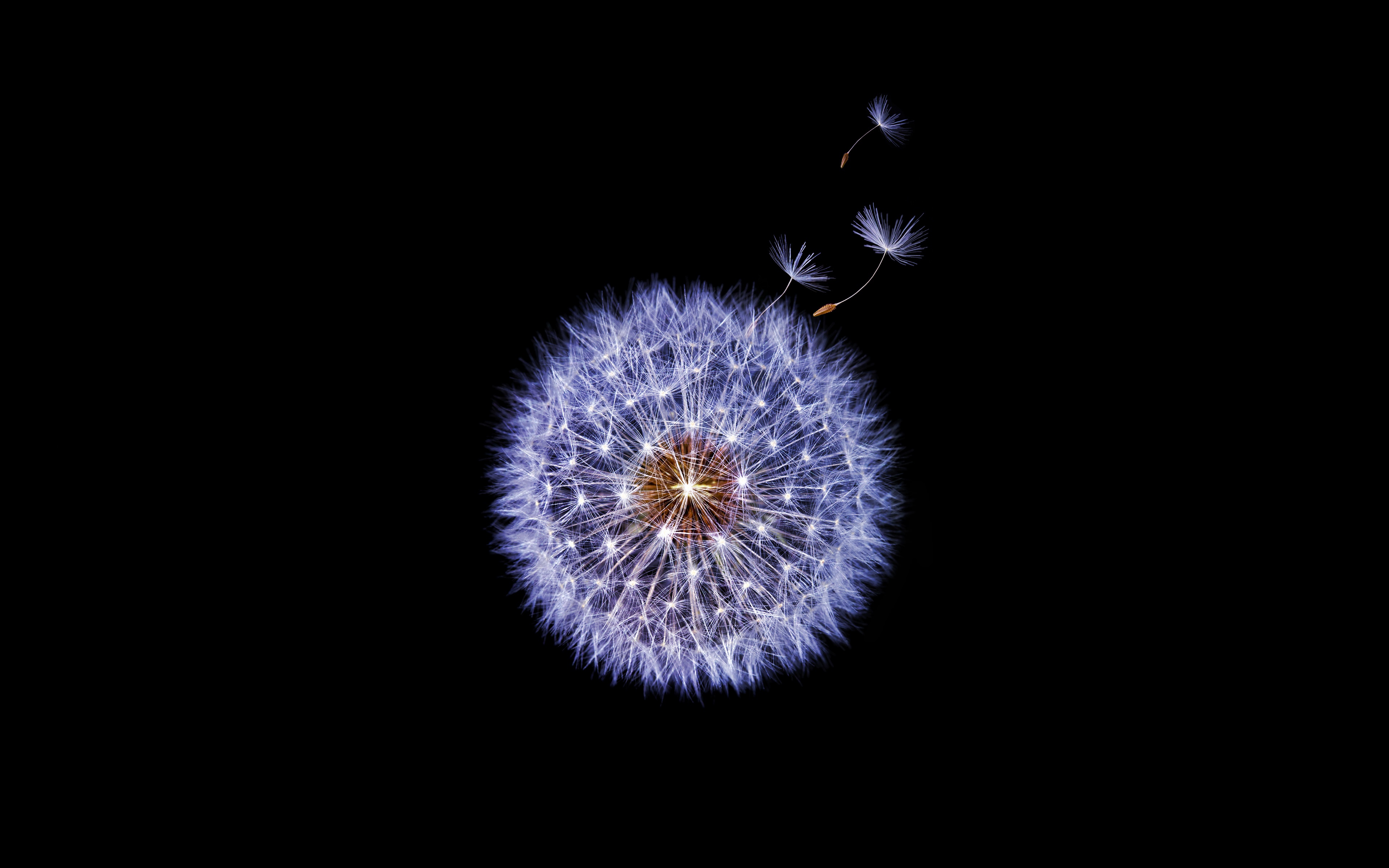 Одуванчик крупным планом на черном фоне - 3840x2400