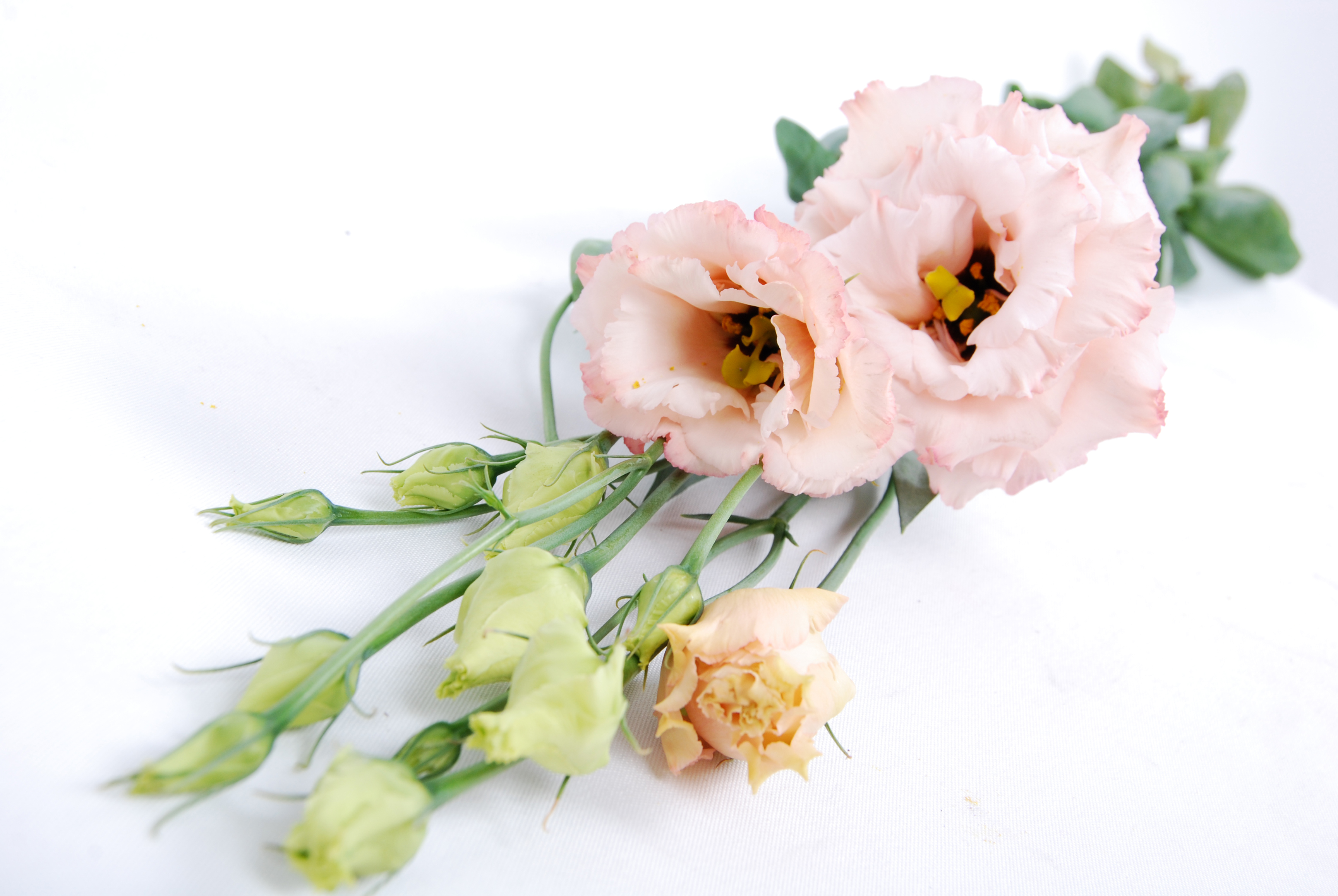 Розовые красивые цветы эустома на белом фоне - 3456x2314