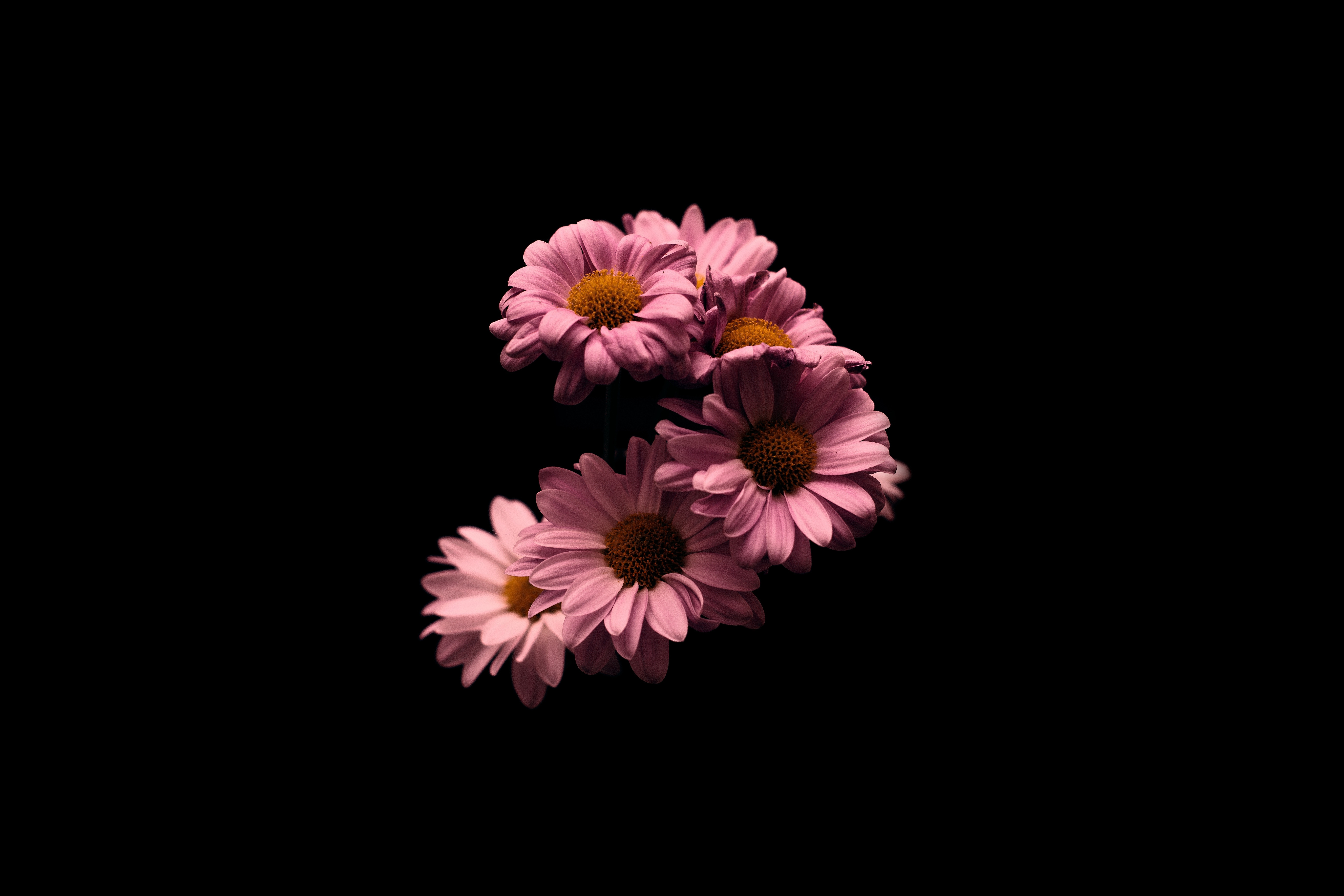 Розовые цветы хризантемы на черном фоне - 8000x5333