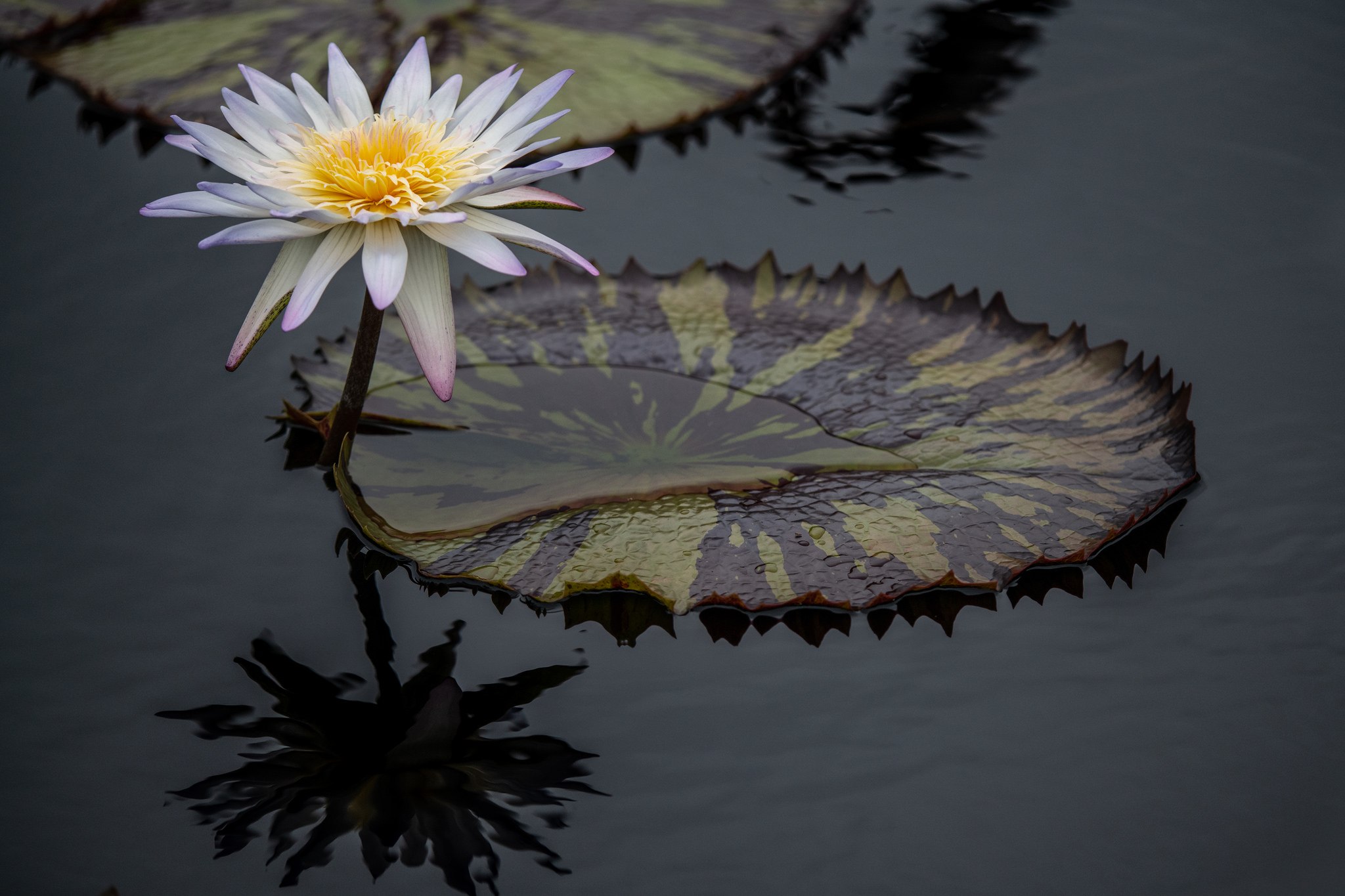 Красивый белый цветок водяной лилии в воде - 2048x1365