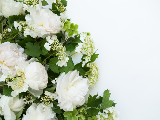 Обои: Букет белых пионов на белом фоне