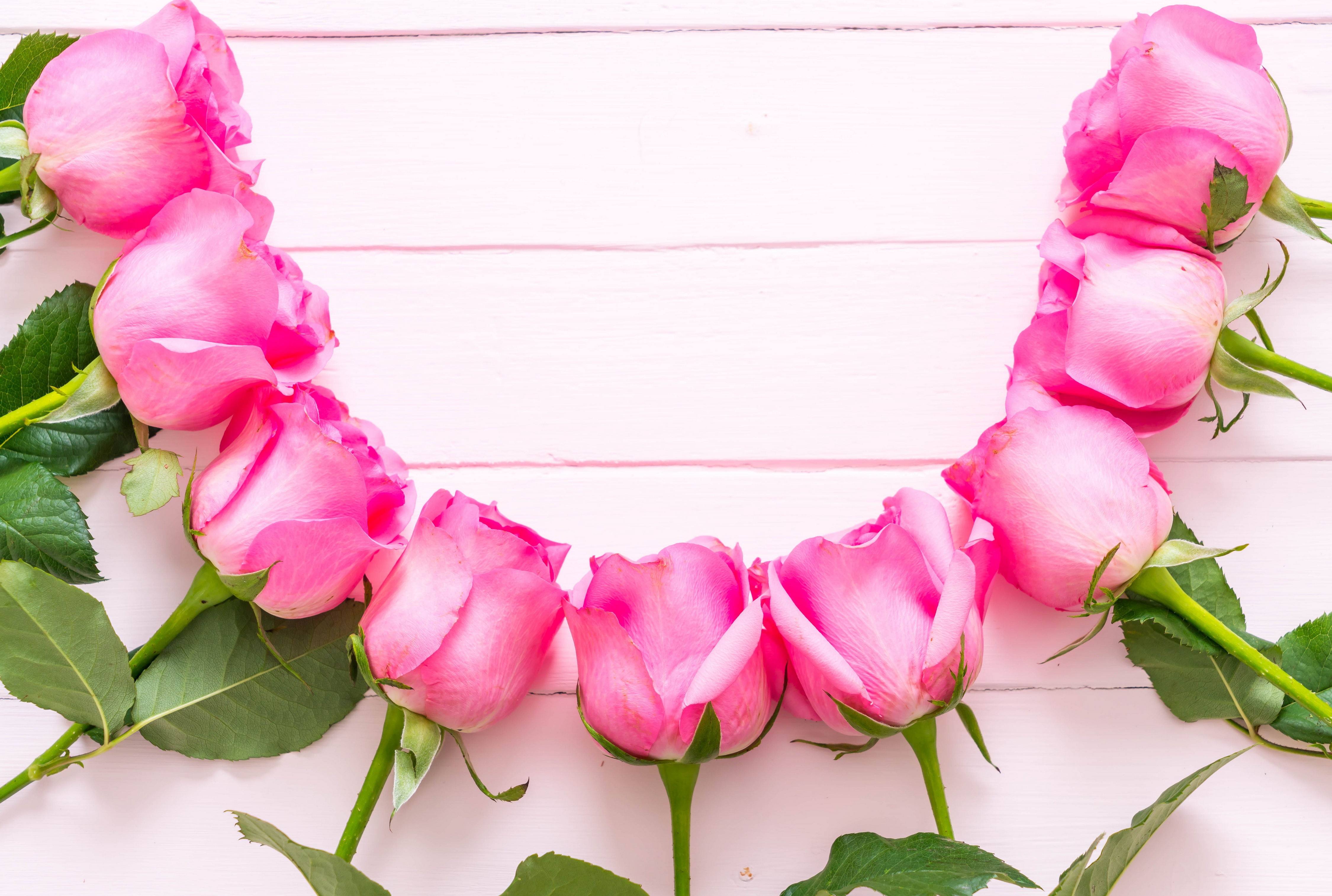 Розовые розы дугой на деревянном фоне - 4500x3027