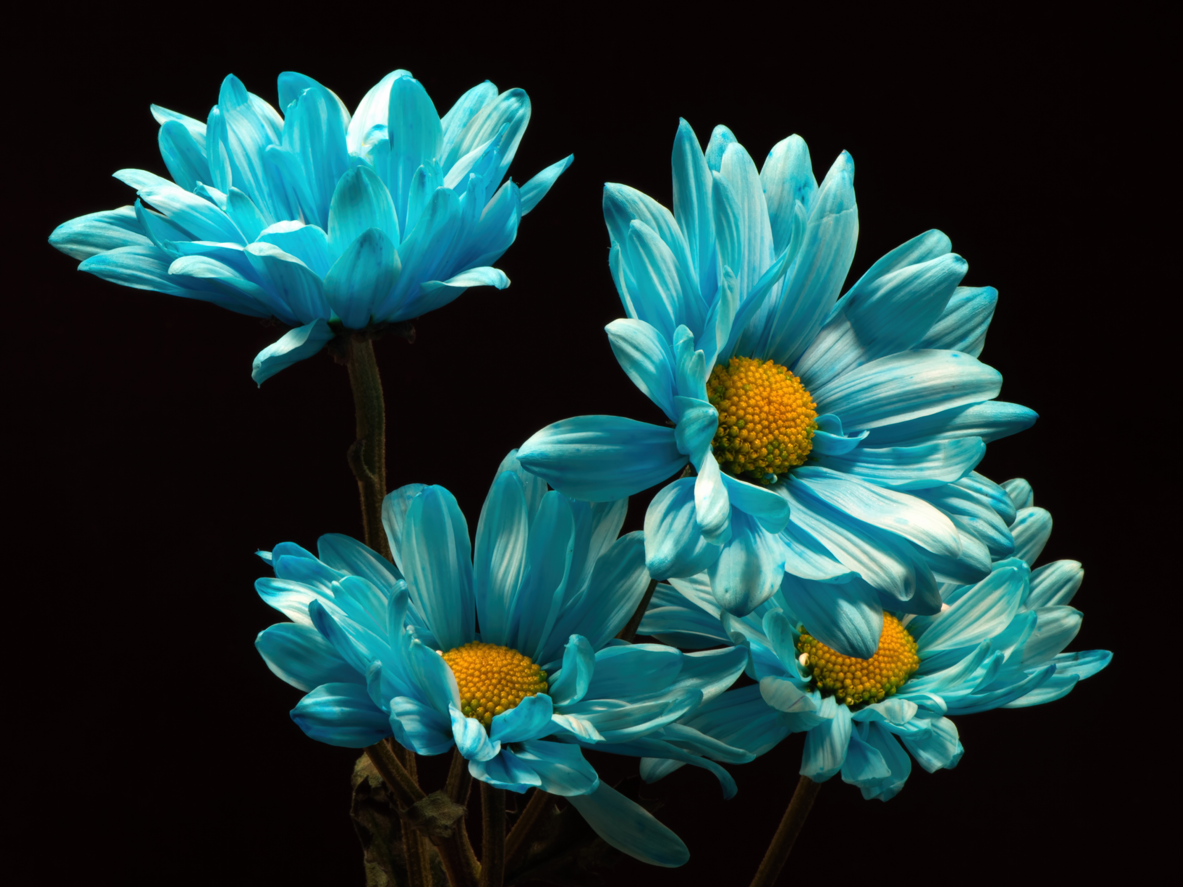 Синие хризантемы на черном фоне - 4000x3000