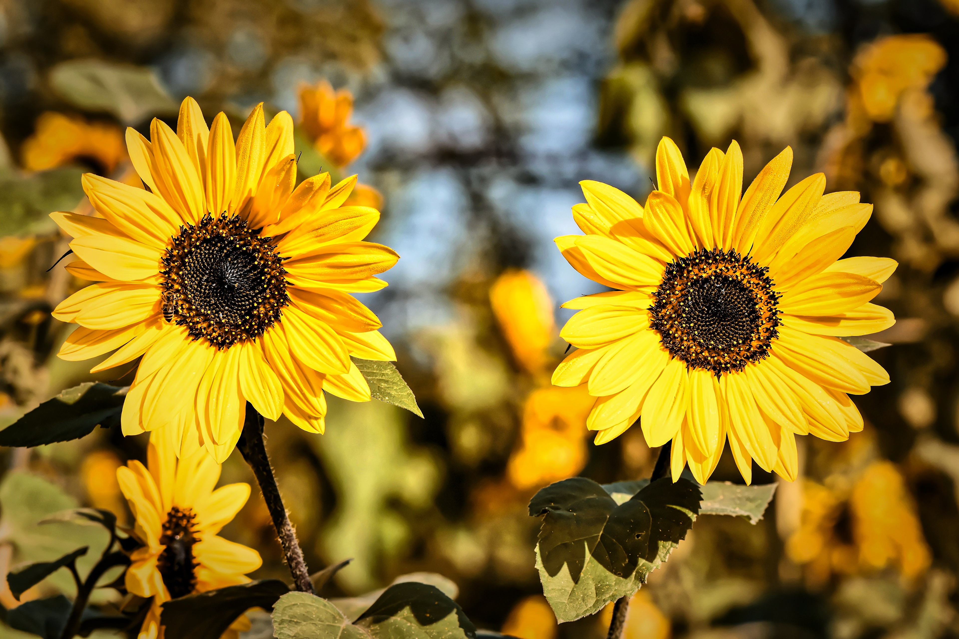 Два желтых цветка подсолнуха крупным планом - 3840x2560