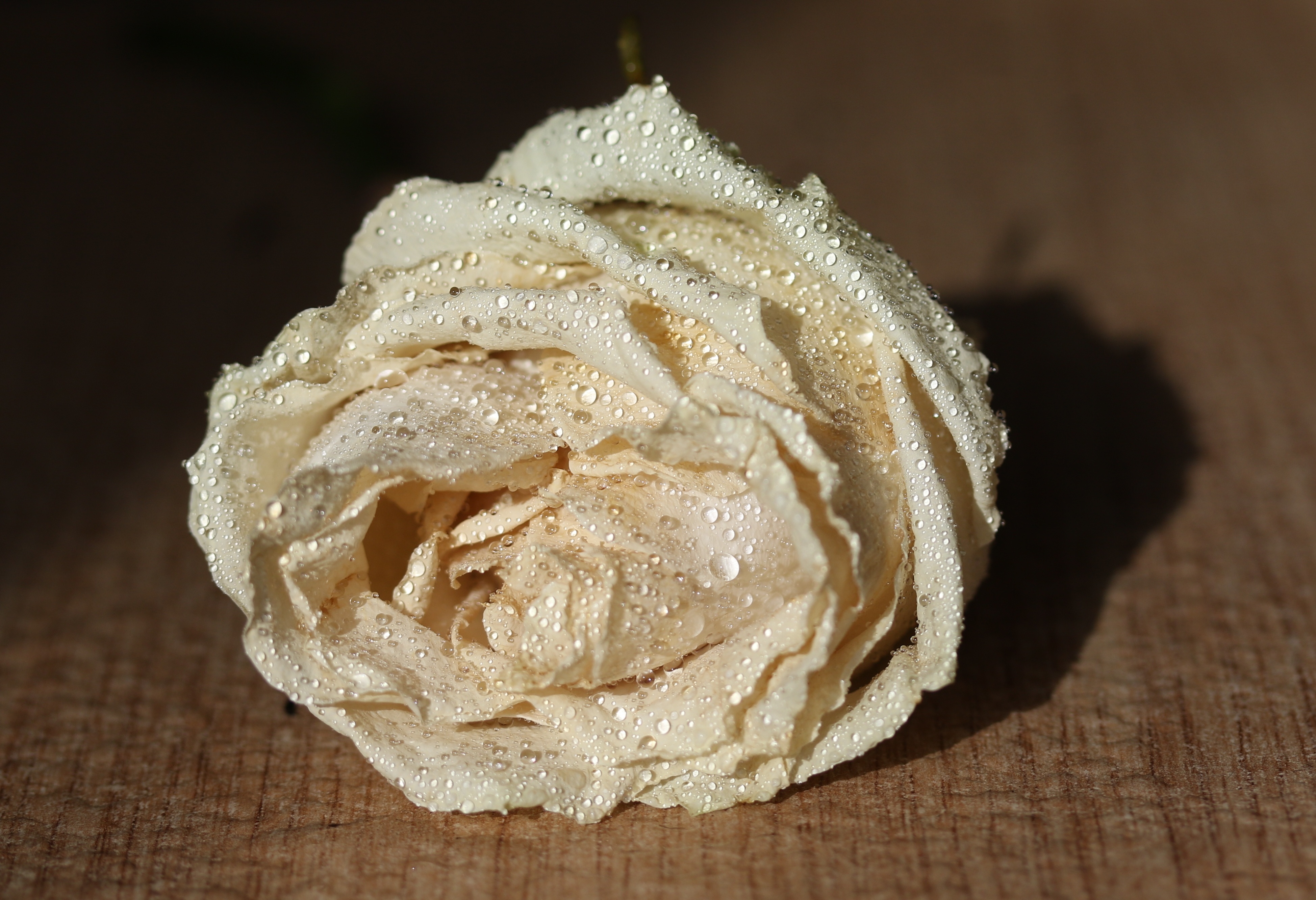 Белый цветок розы в каплях росы - 3896x2666