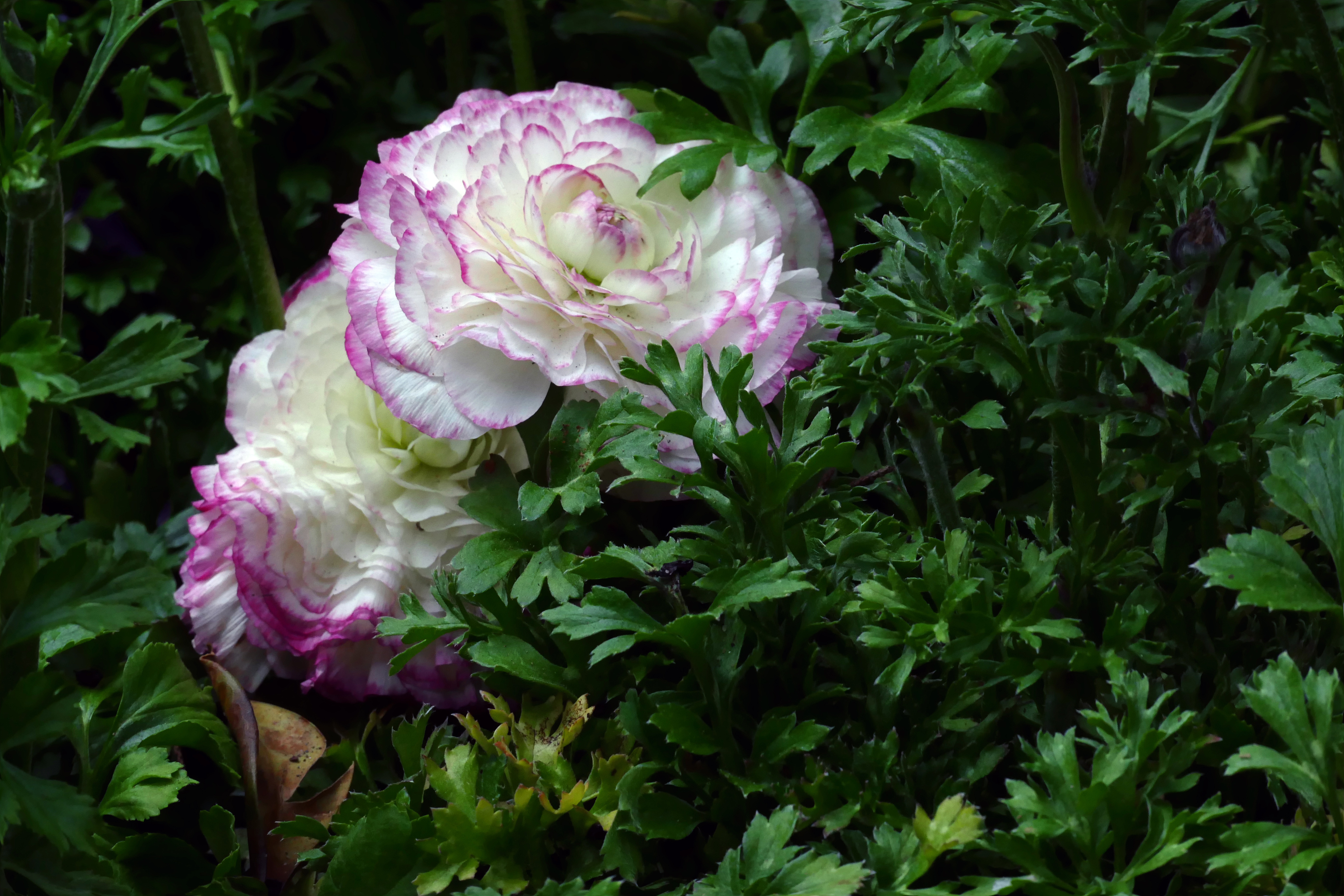 Два красивых цветка лютика в зеленых листьях - 4050x2700