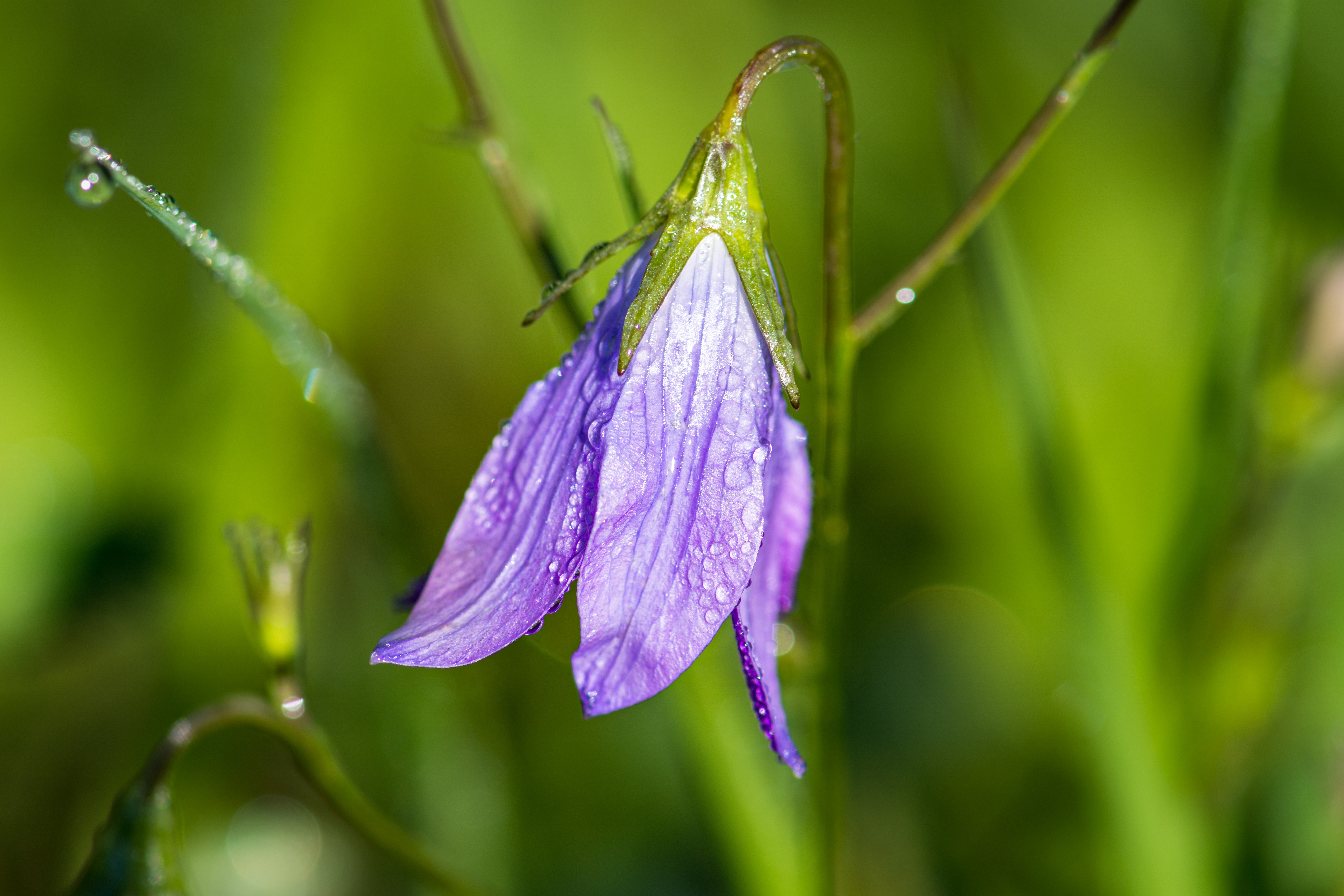 Сиреневый цветок колокольчик в каплях росы - 4800x3200
