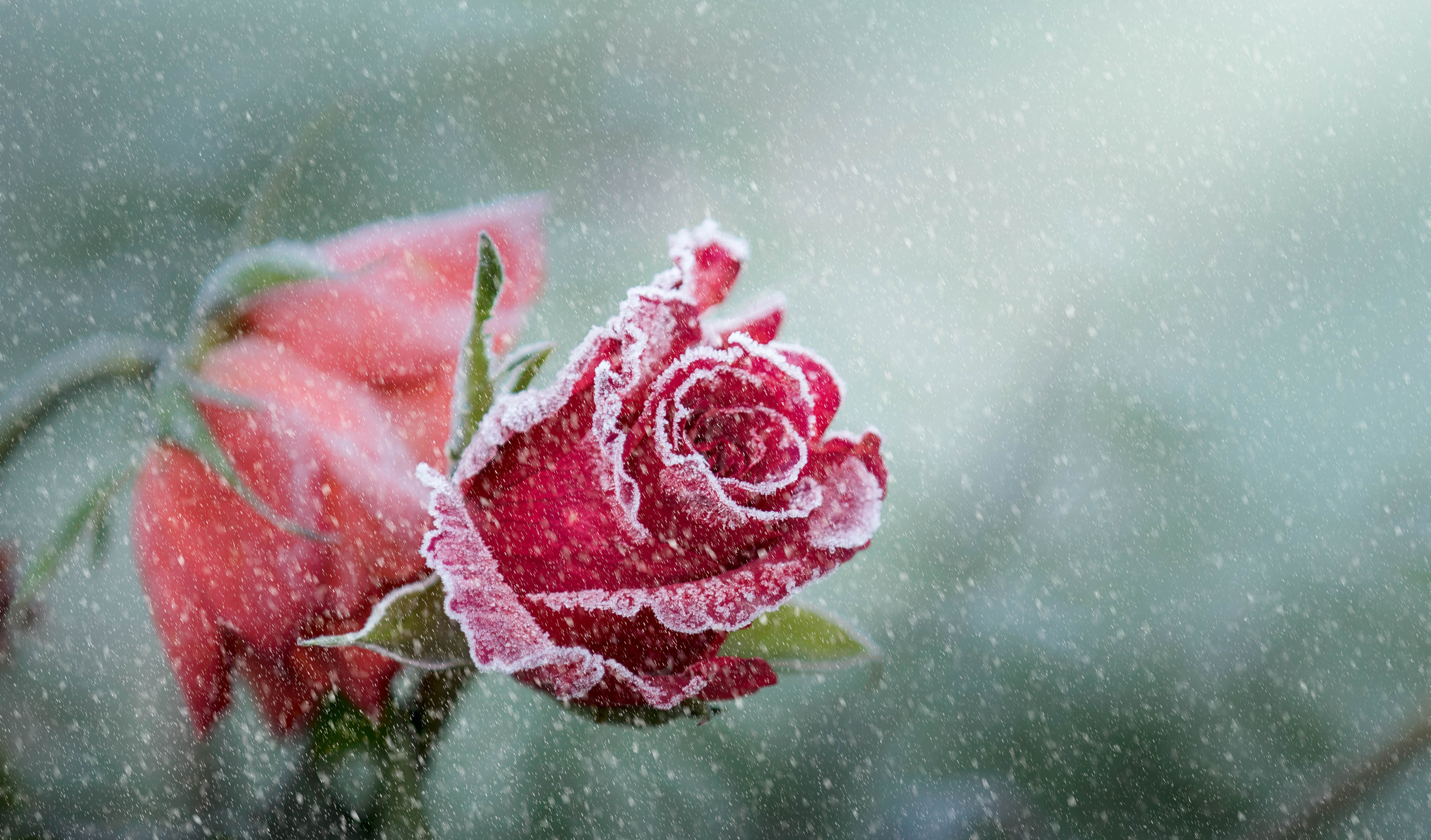 Покрытая инеем красная роза зимой - 3807x2235