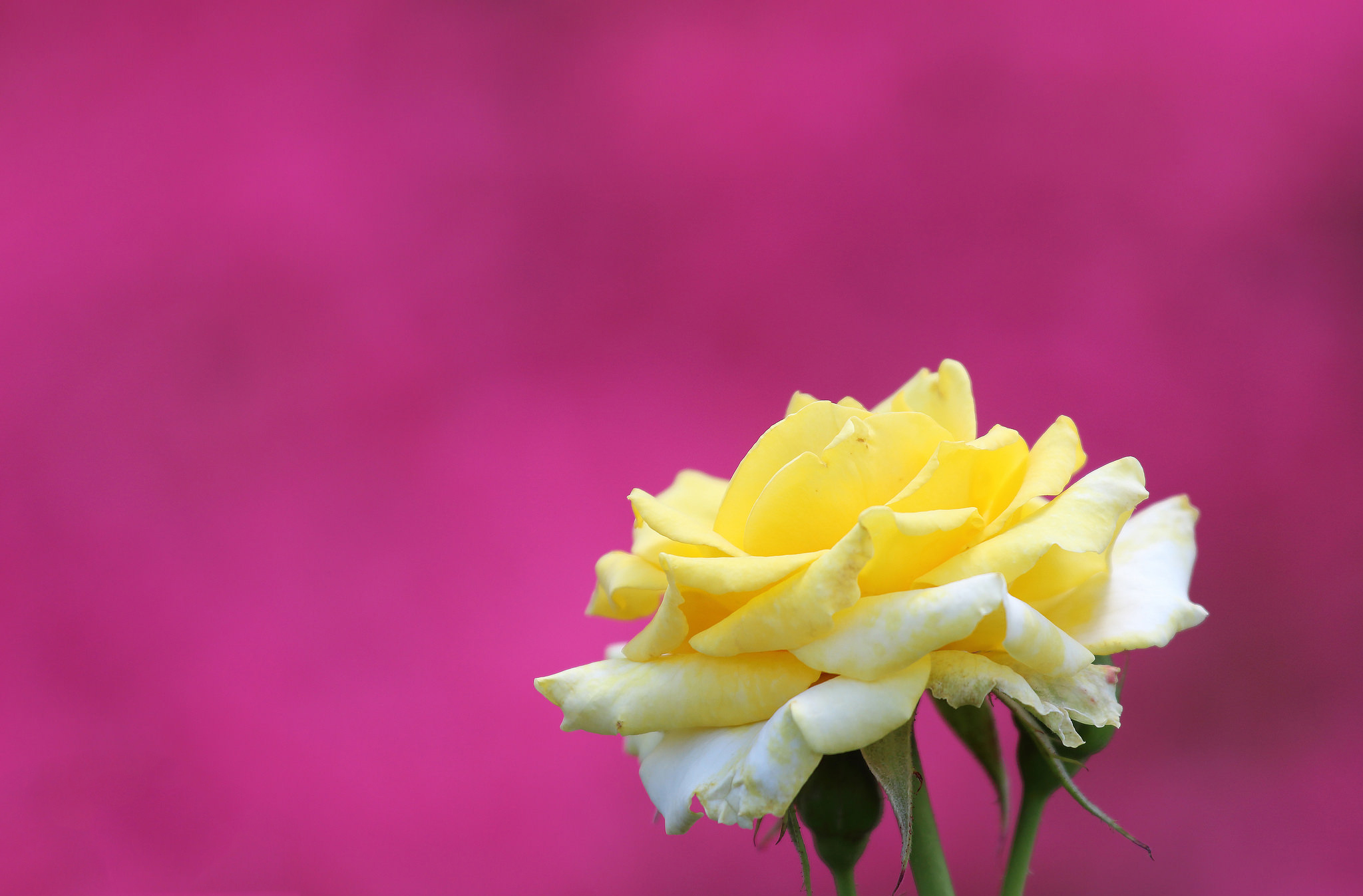 Цветок желтой розы на розовом фоне - 2048x1347