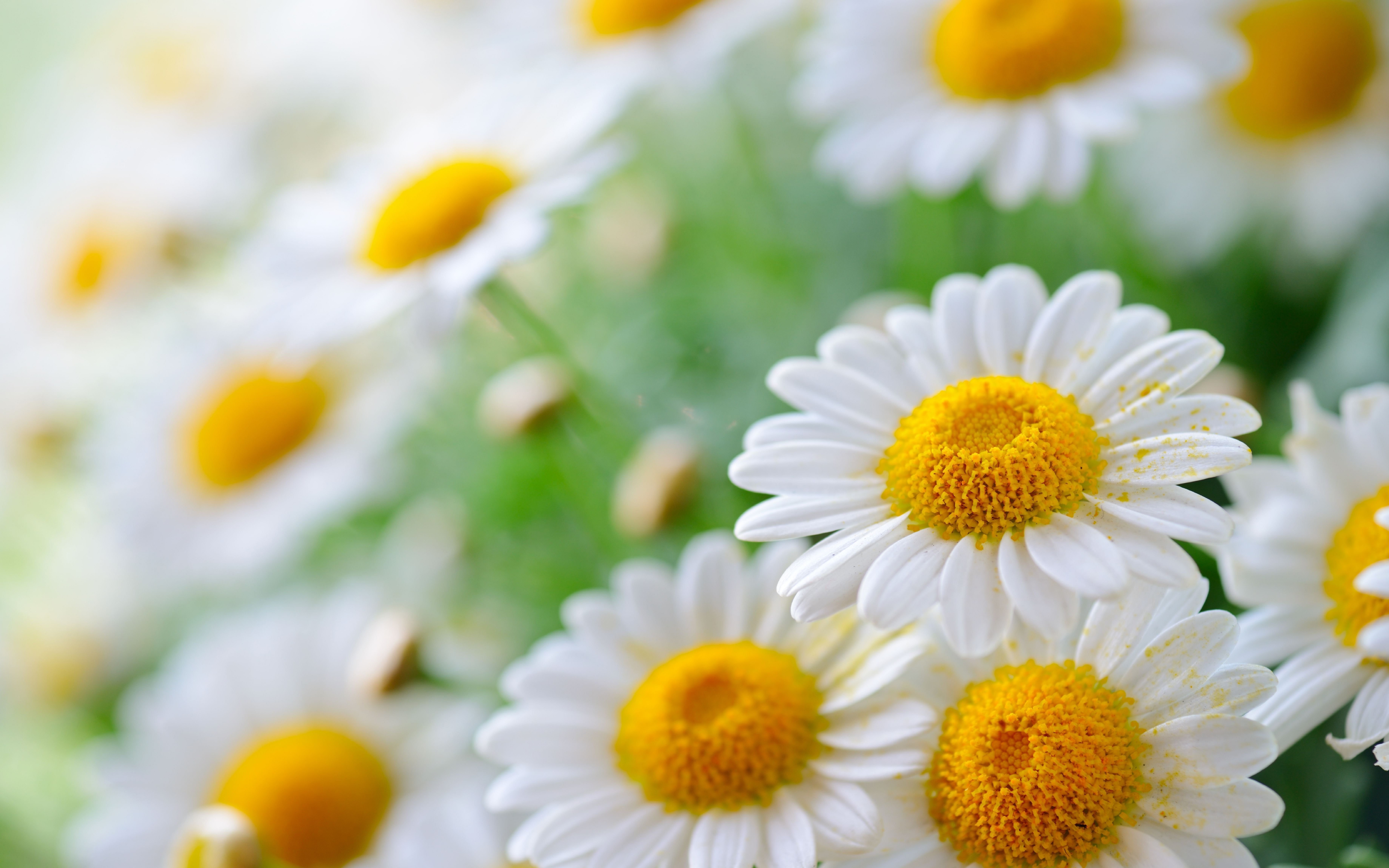 Белая ромашка с белыми лепестками в пыльце - 8192x5120