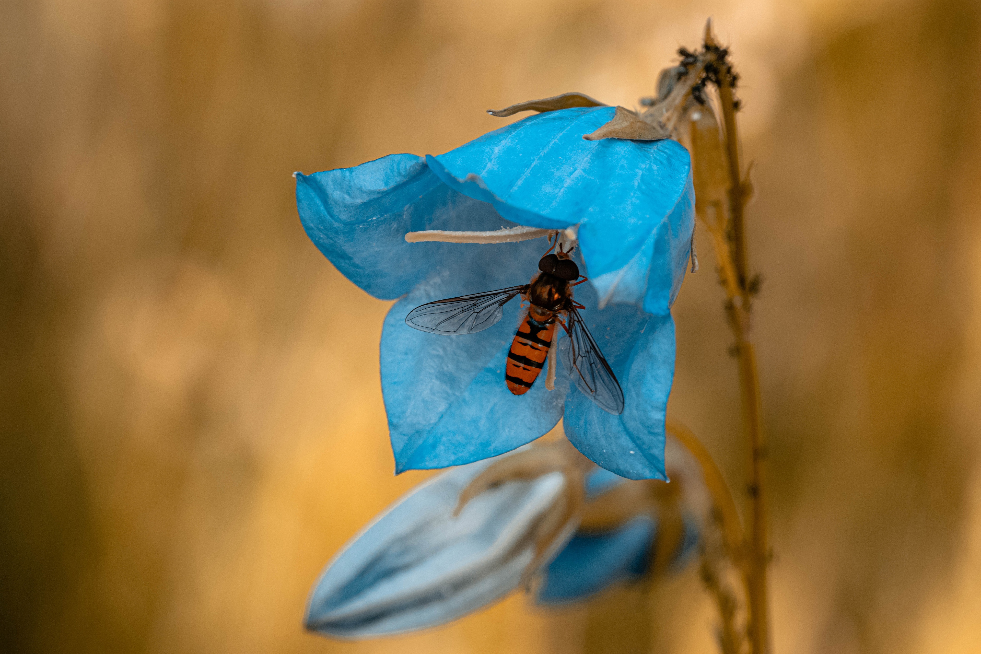 Обои: Голубой цветок колокольчика с насекомым крупным планом