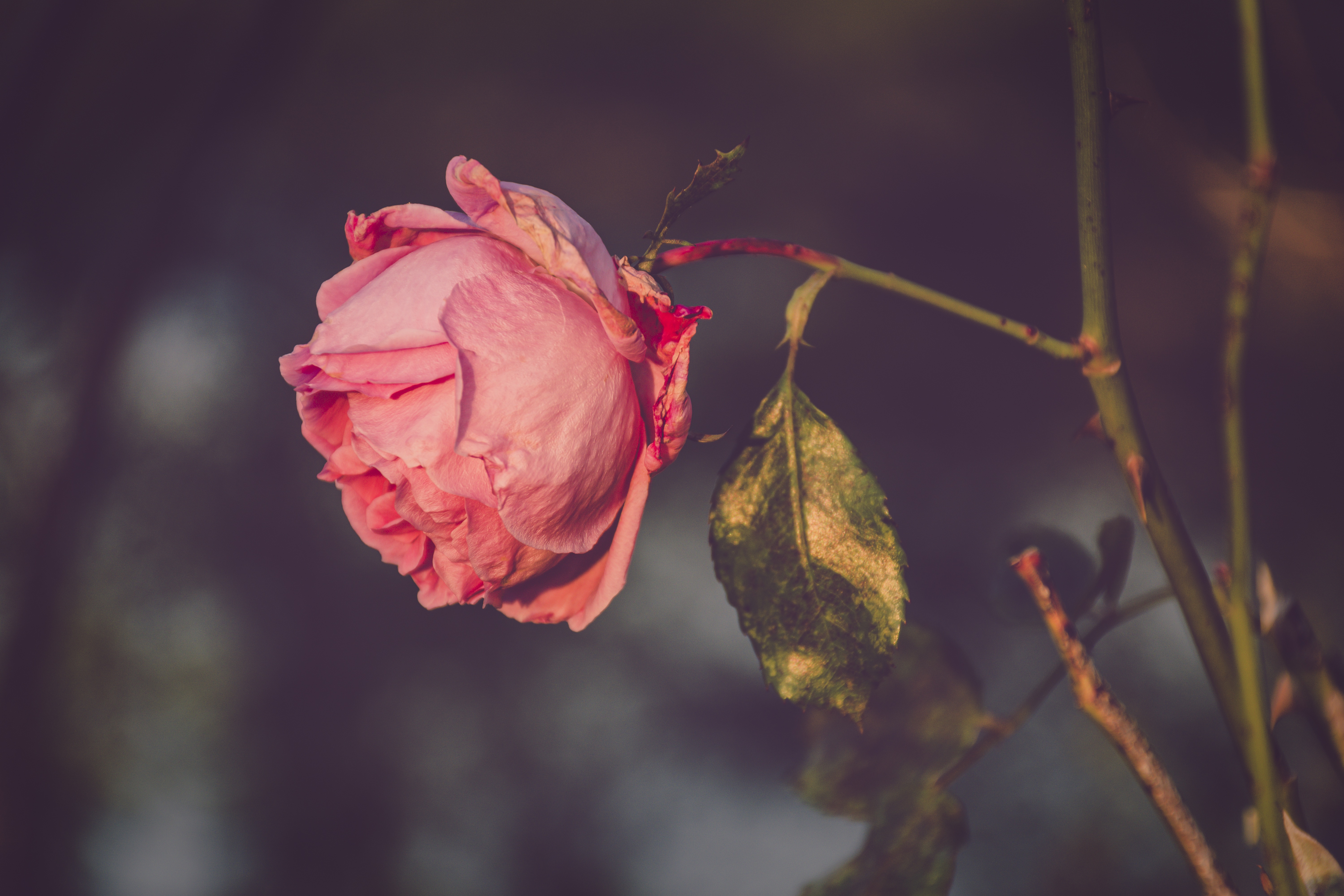 Сухая розовая роза на ветке - 6000x4000