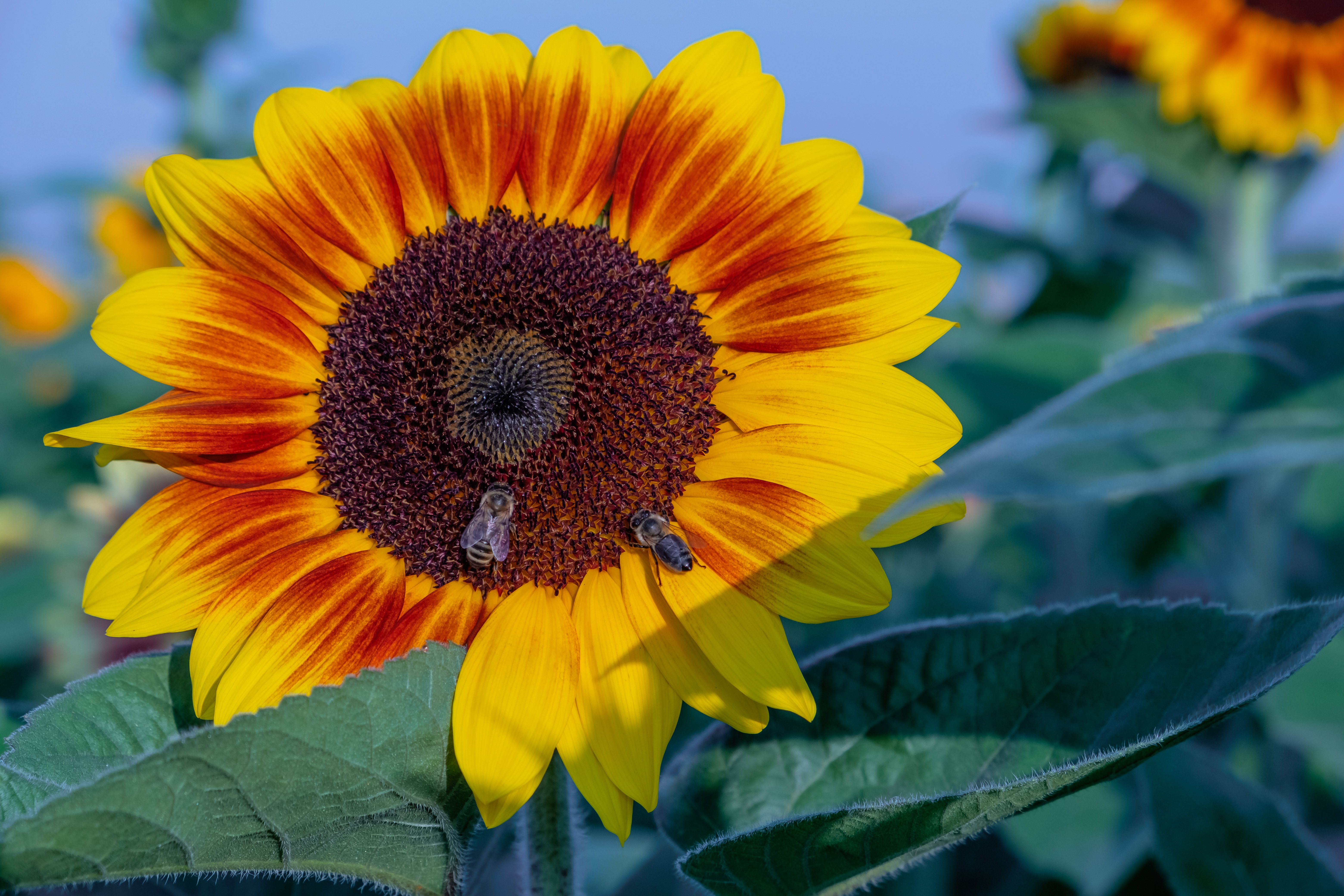 Большой красивый цветок подсолнуха с пчелами - 6240x4160
