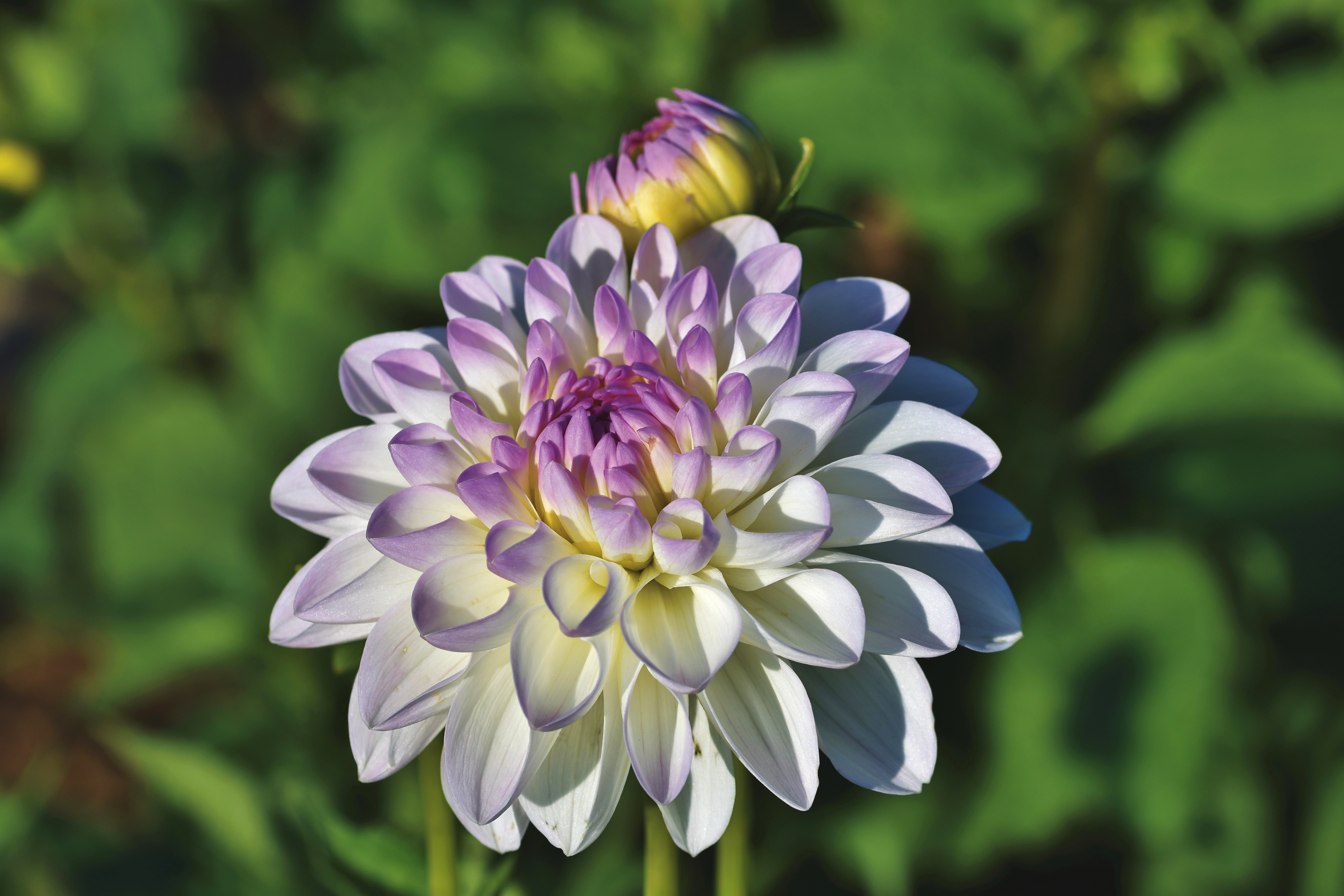Белый цветок георгина с фиолетовой серединкой - 6000x4000