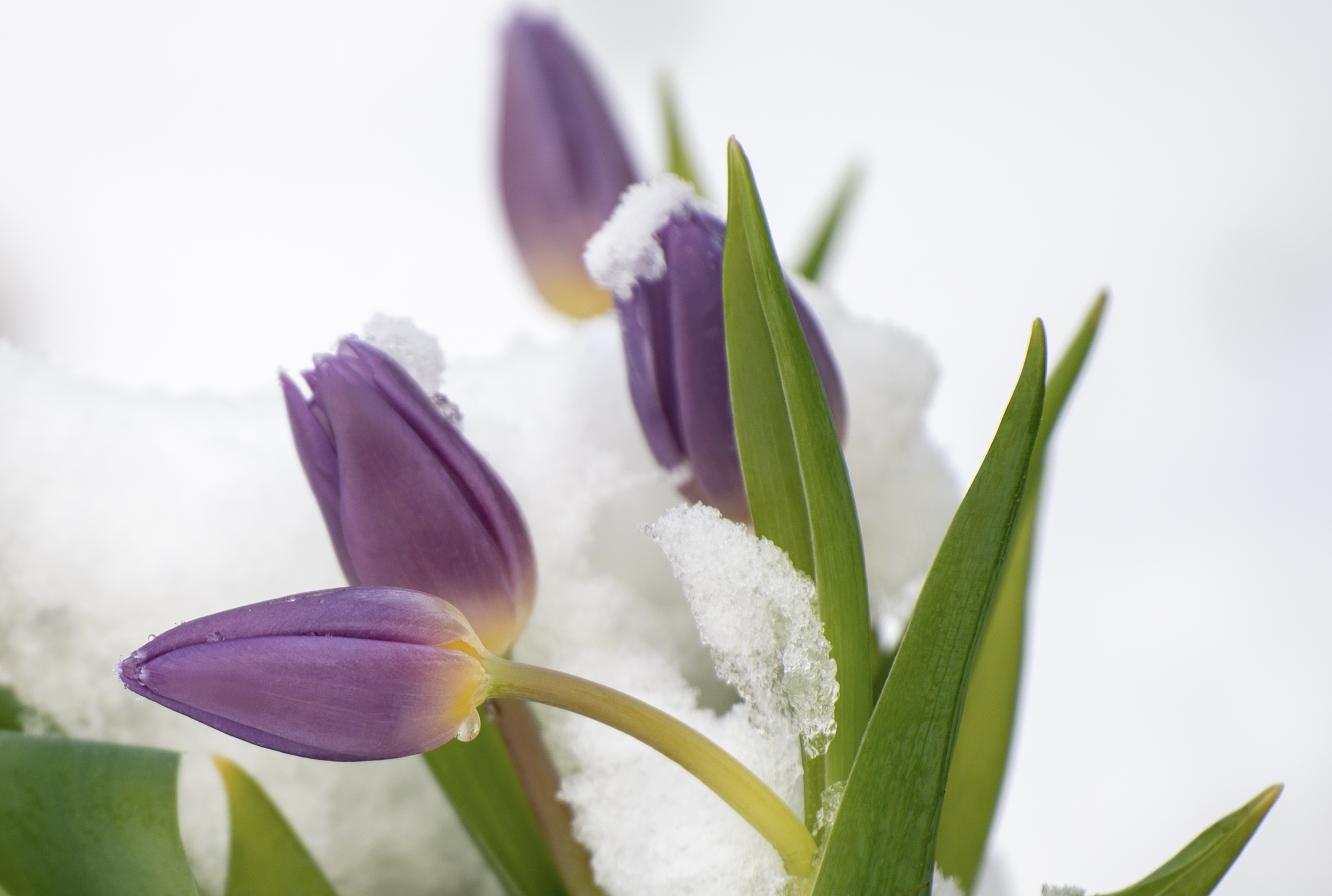 Фиолетовые тюльпаны в снегу - 4913x3307