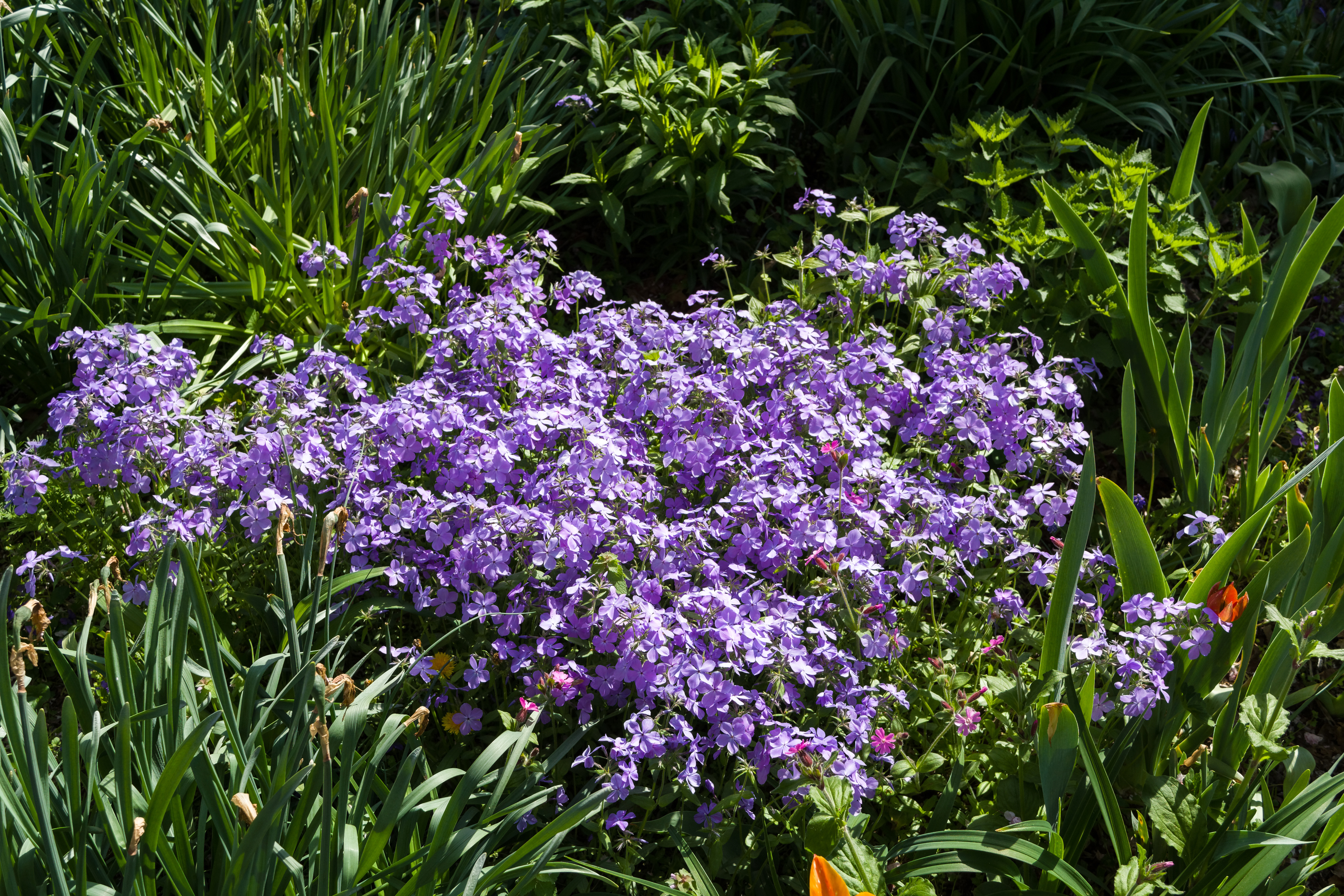 Много фиолетовых мелких цветов в зеленой траве - 4500x3000