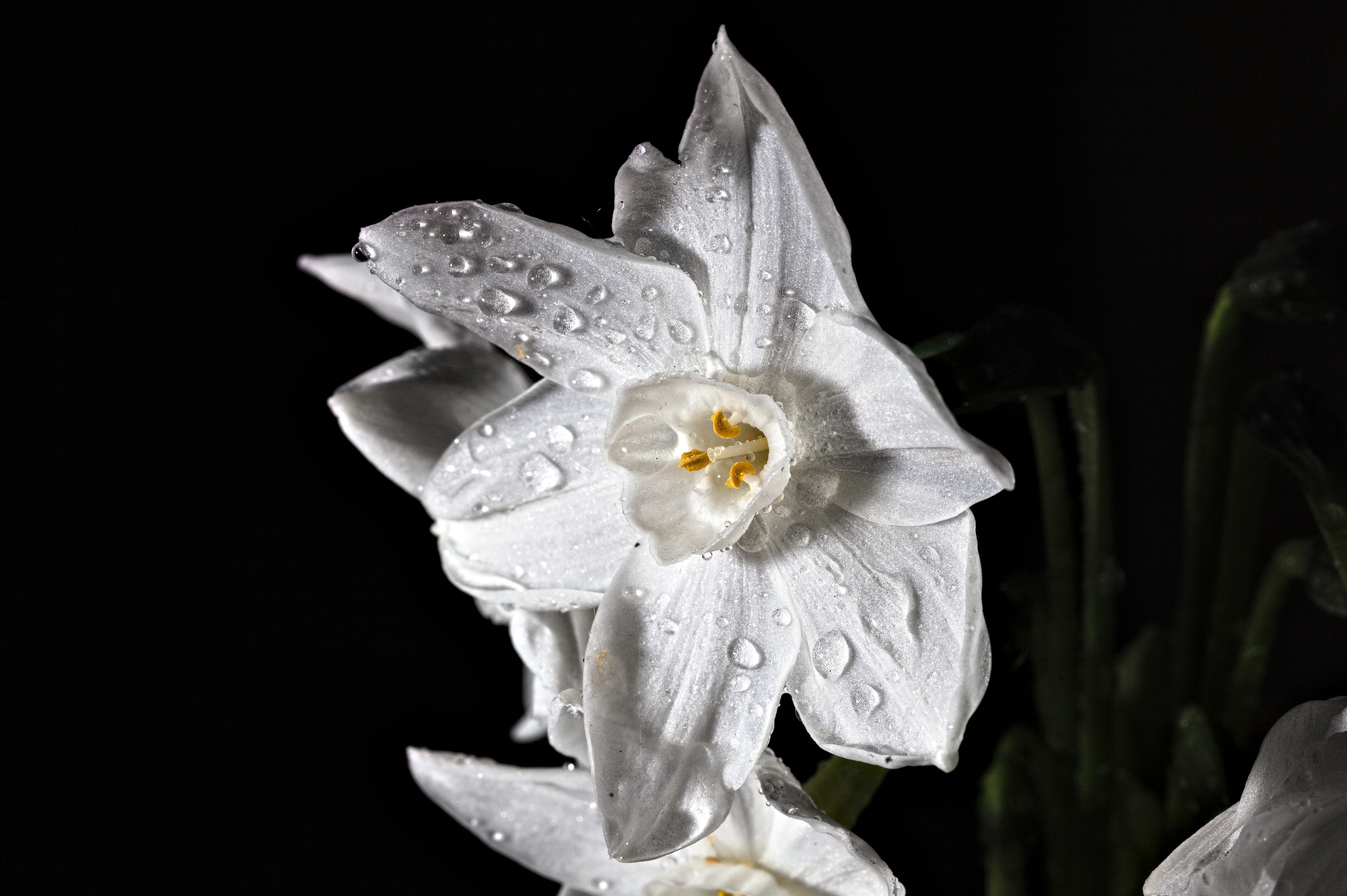 Белый цветок нарцисса в каплях росы - 4758x3167