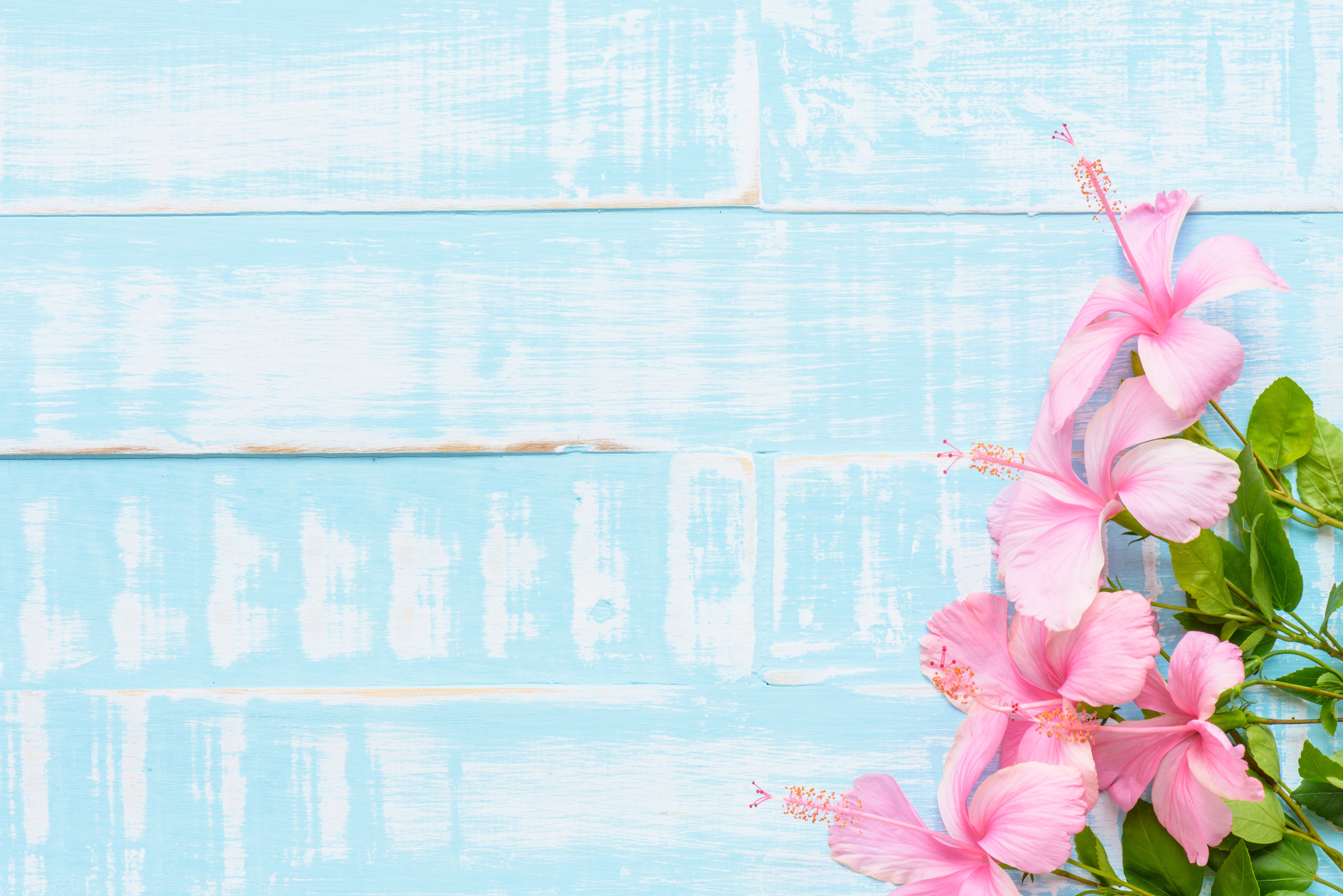 Розовые цветы гибискуса на голубом фоне - 5520x3684