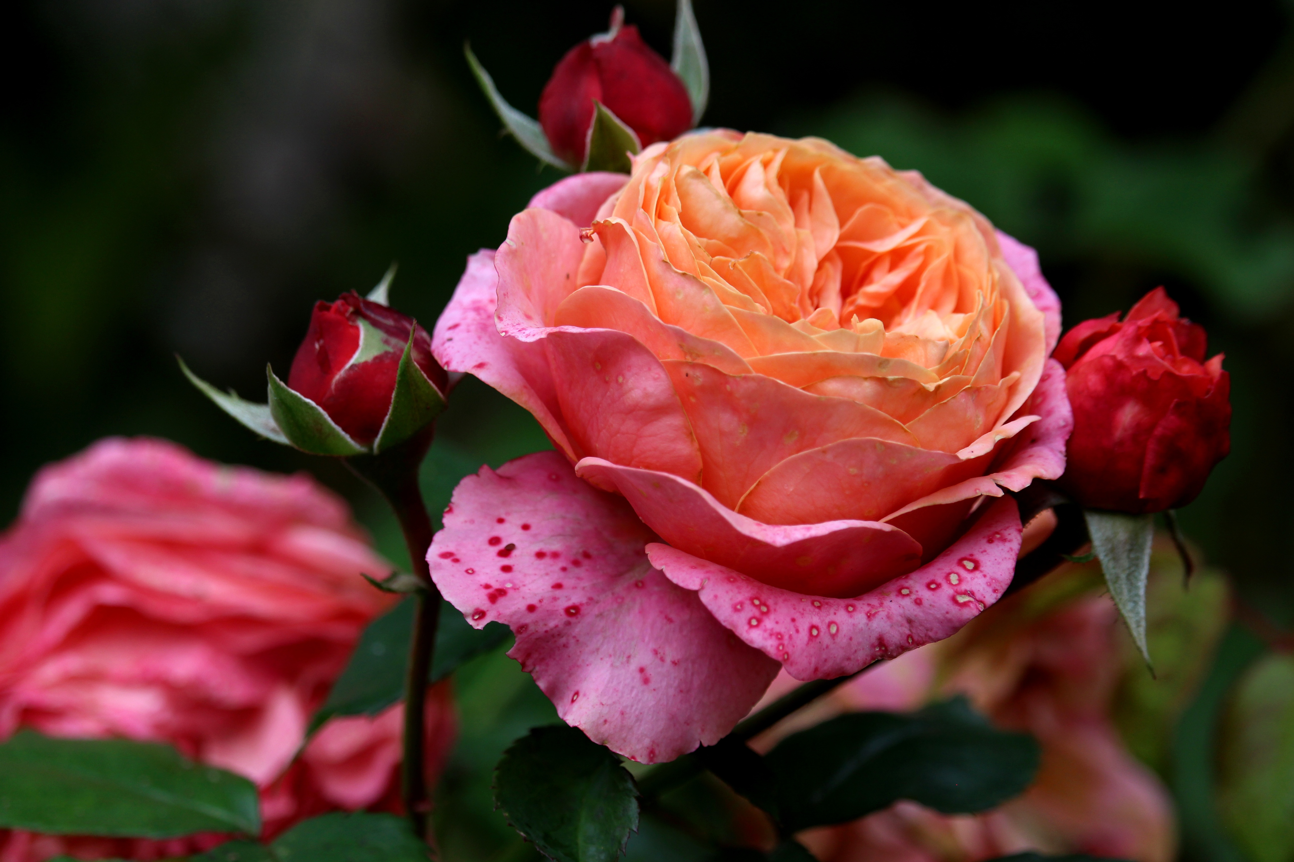 Красивая садовая розовая роза с бутонами - 5184x3456