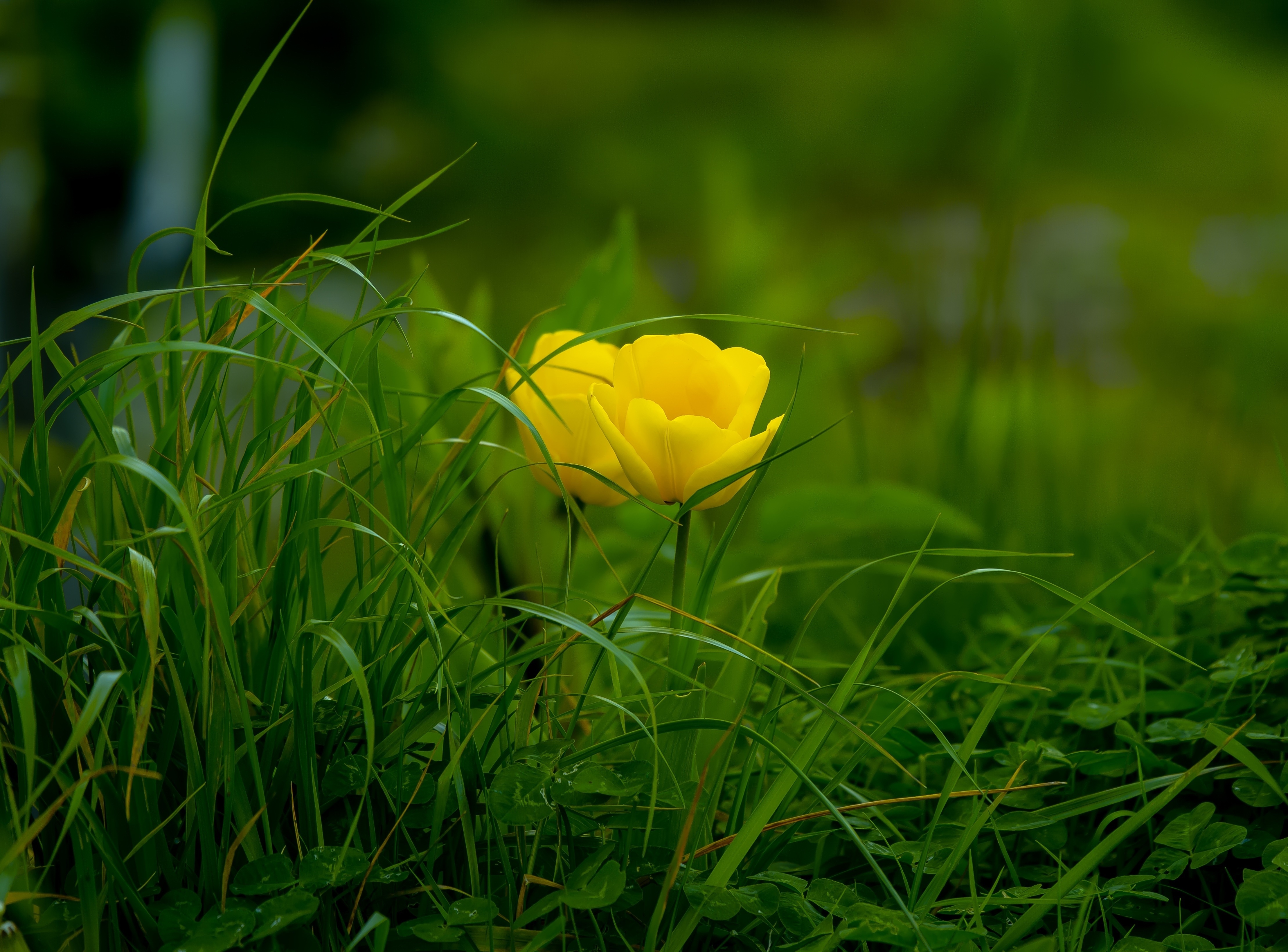 Два желтых тюльпана в зеленой траве - 4436x3280