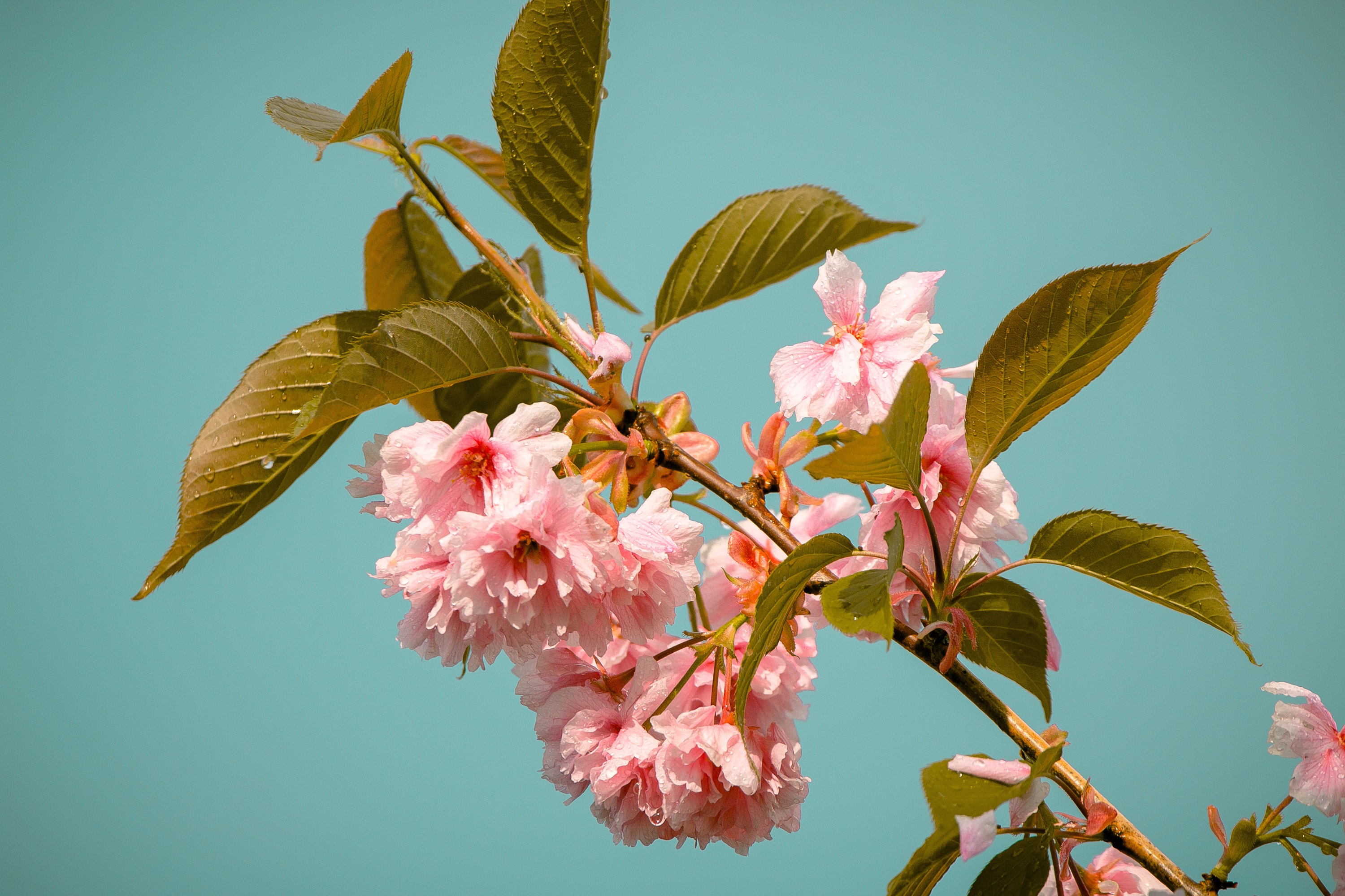 Красивые розовые цветы на ветках черешни - 3000x2000