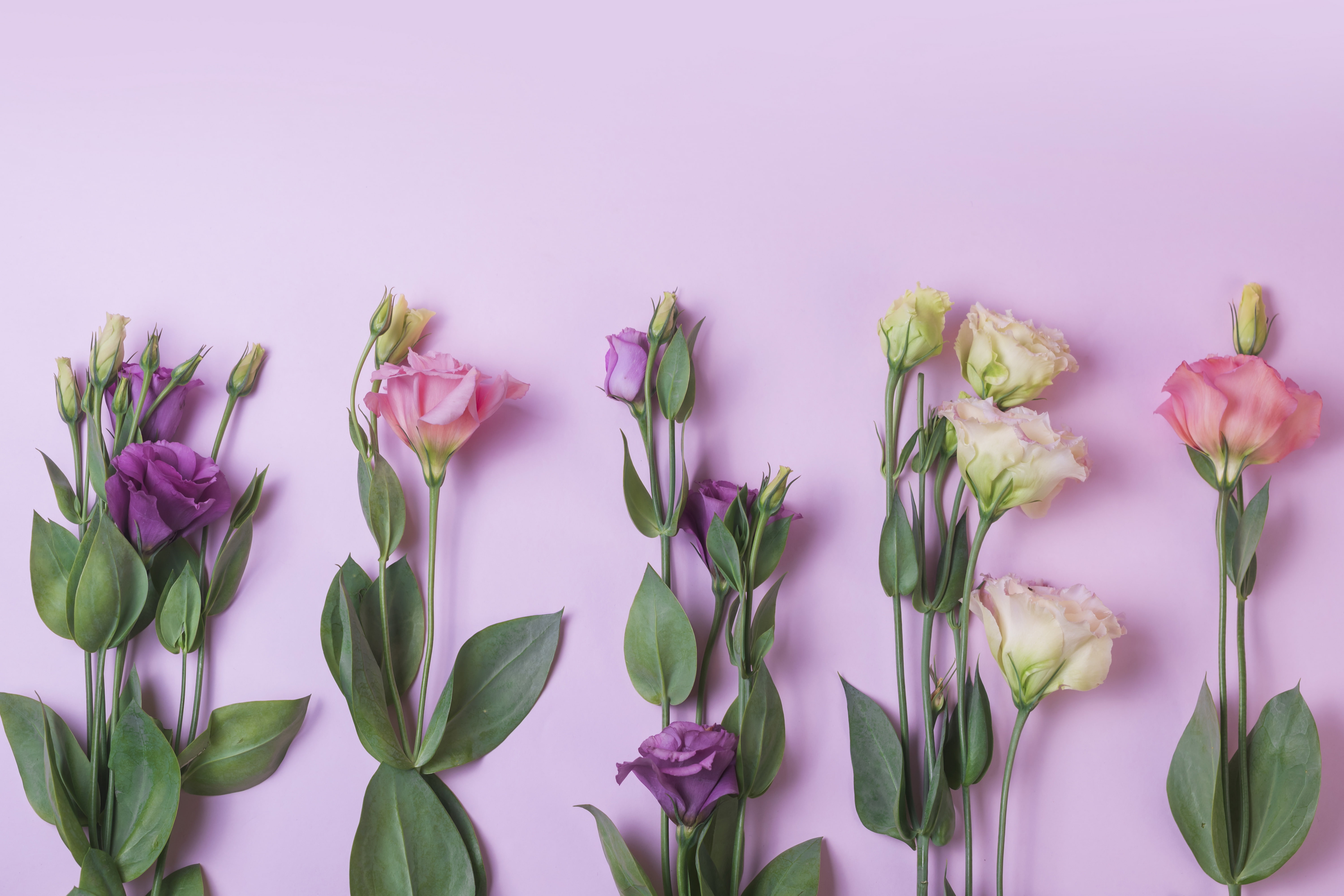 Цветы эустомы на розовом фоне - 6000x4000