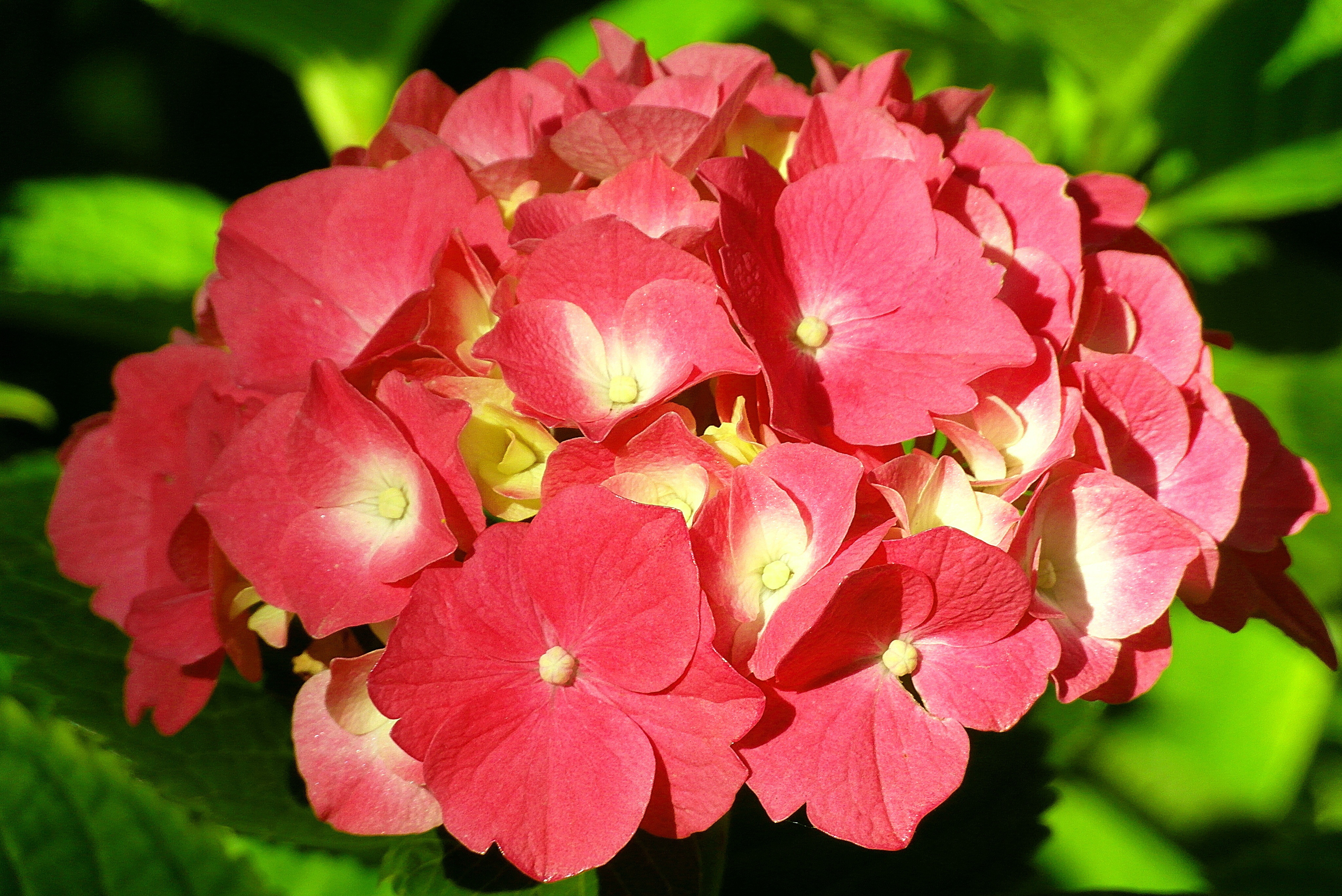 Красный цветок гортензии в лучах солнца - 4096x2736