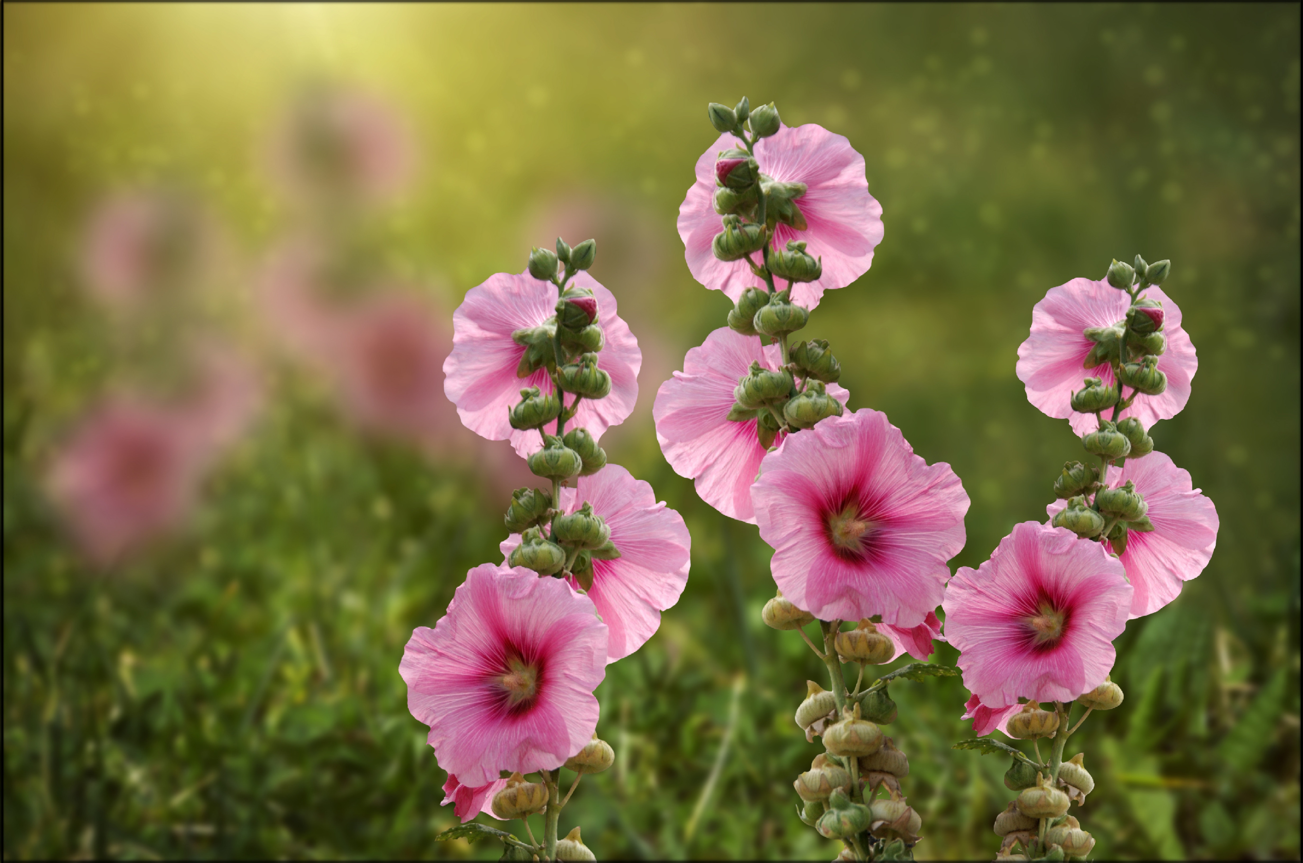Розовые мальвы в лучах летнего солнца - 4928x3264
