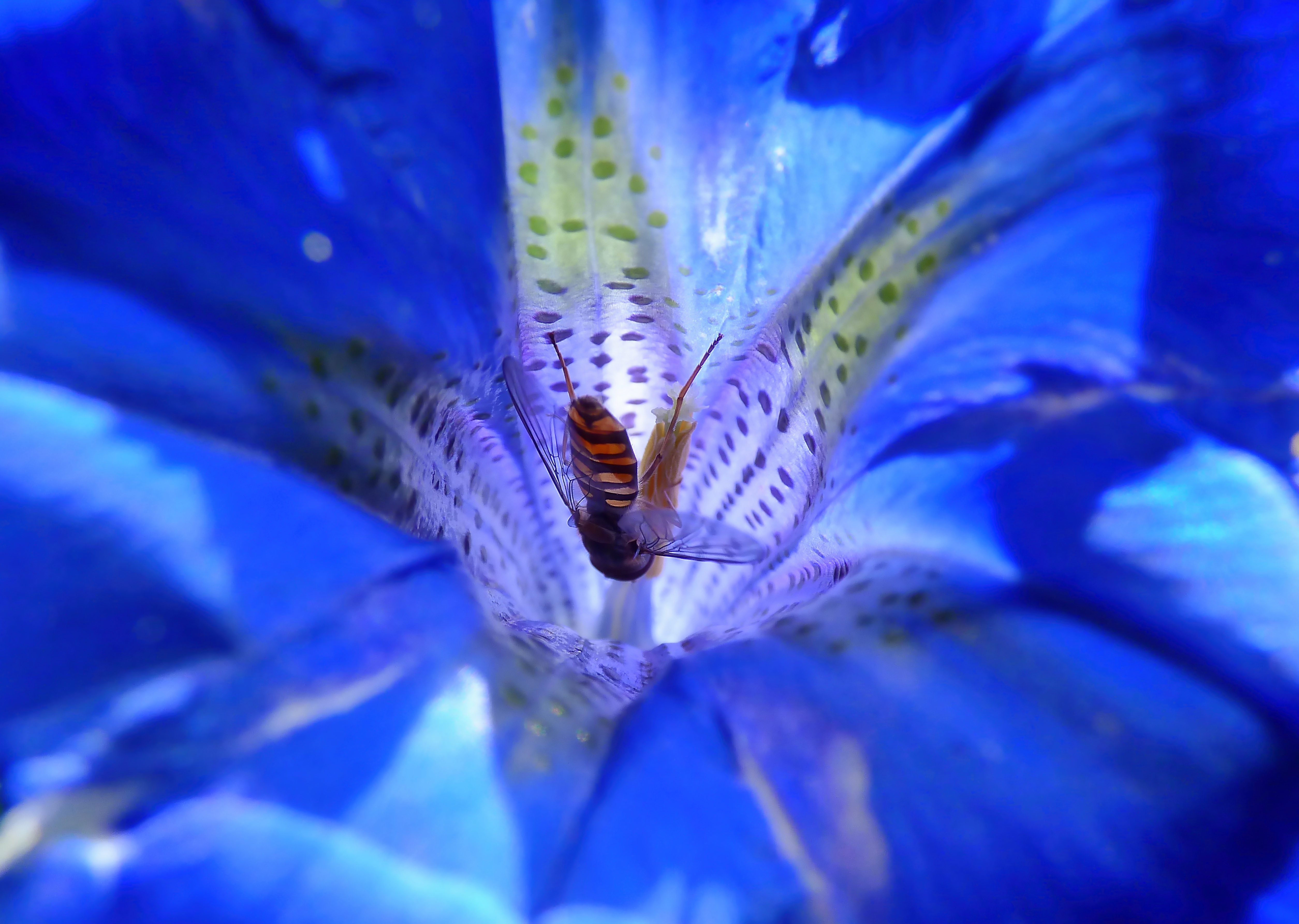 Пчела опыляет цветок горечавки - 5019x3572