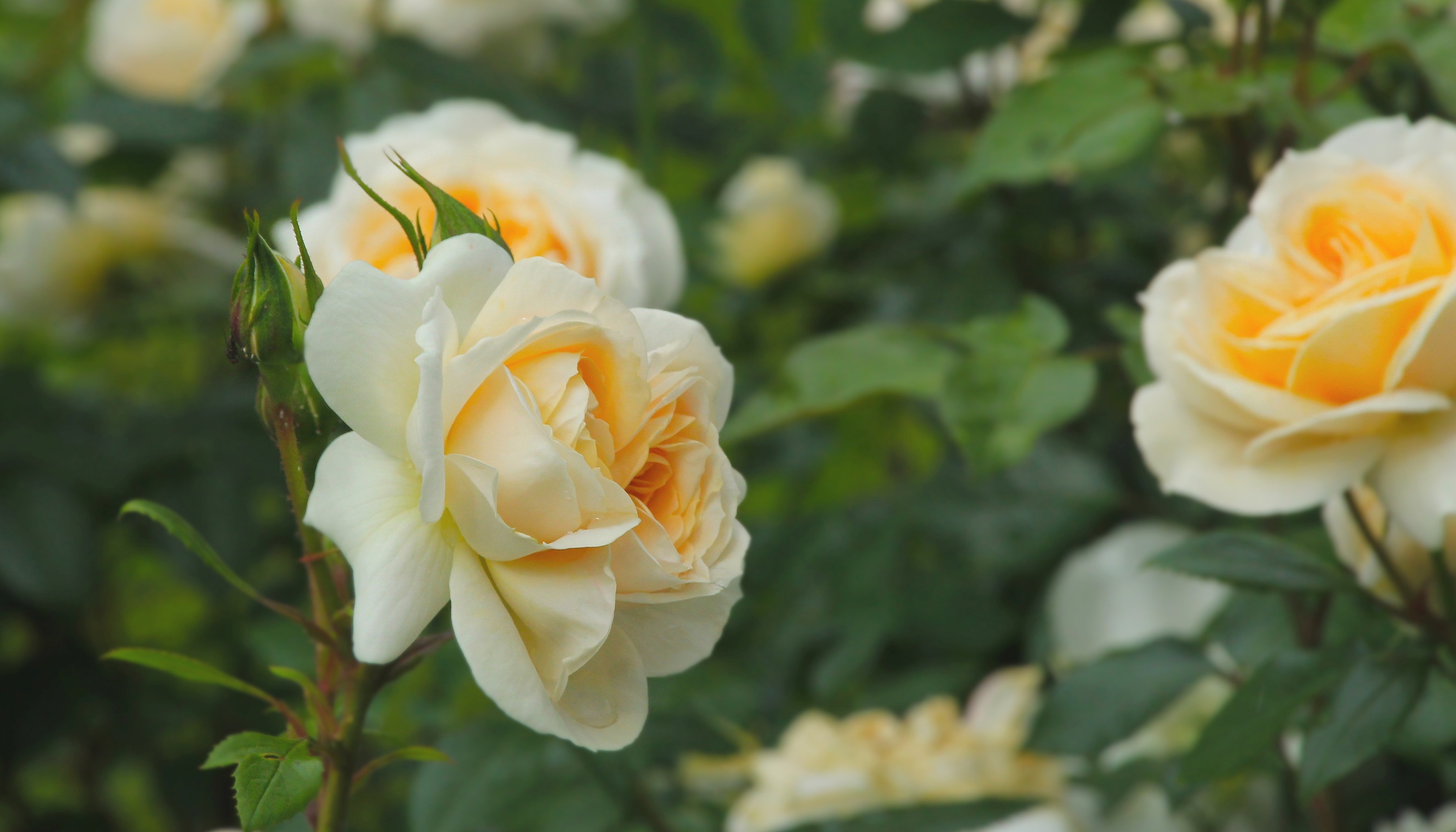Желтые парковые розы с бутонами - 2521x1440