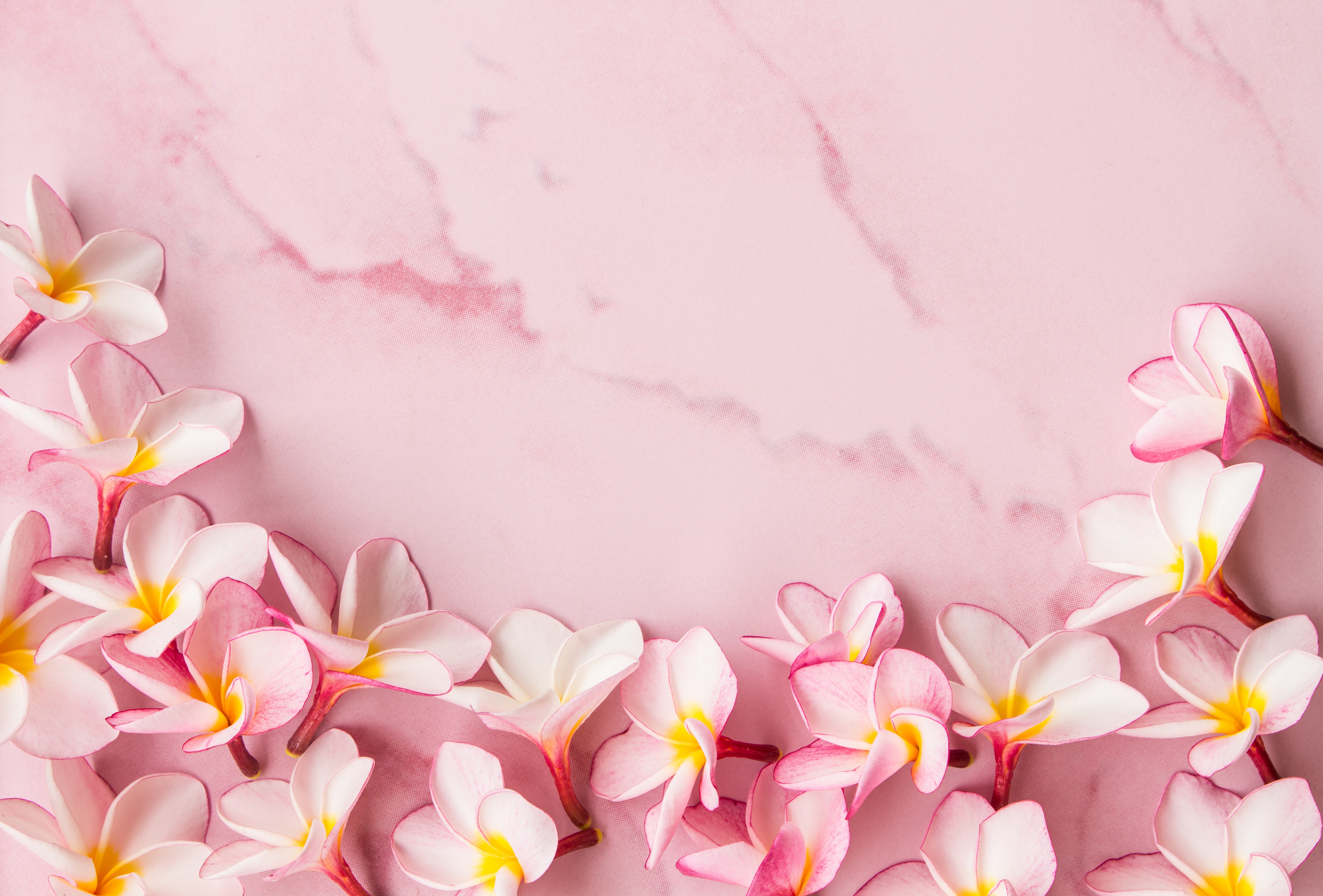 Розовые цветы плюмерии на розовом фоне - 5098x3456