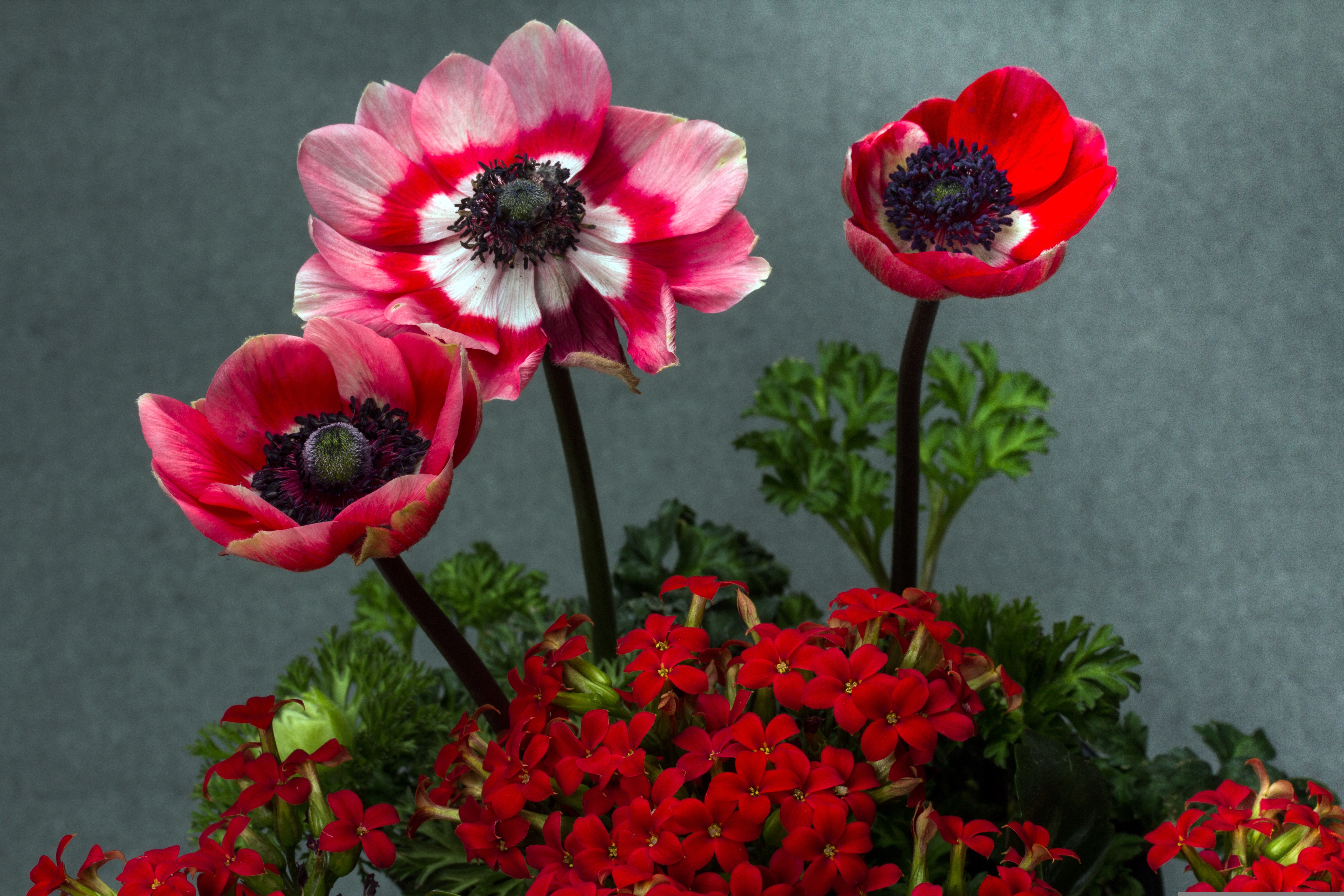 Розовые маки с цветами герани - 5184x3456