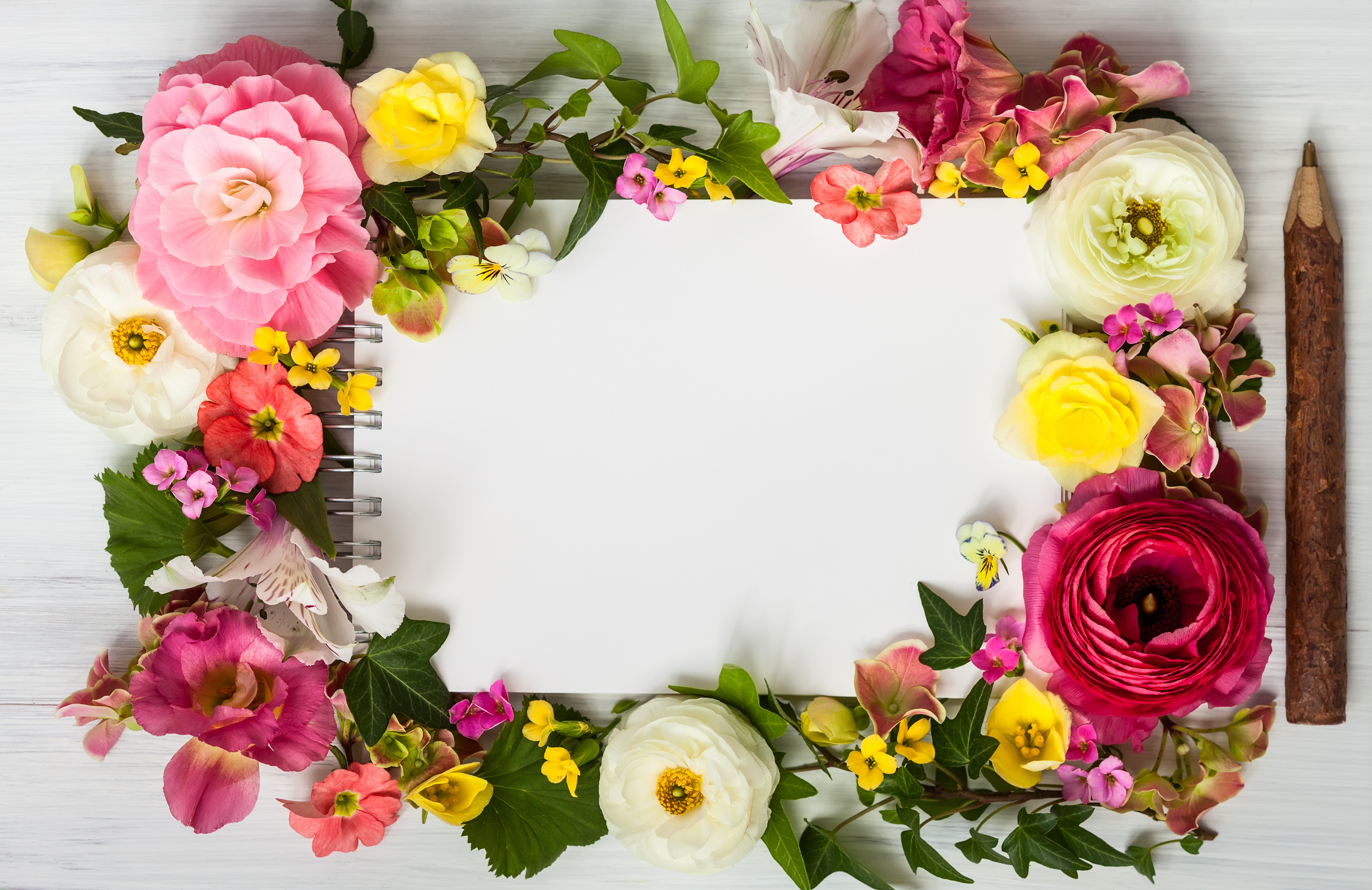 Красивая рамка с цветами и карандашом - 5479x3554