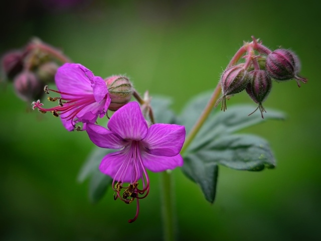 Обои: Сиреневые садовые цветы на зеленом фоне
