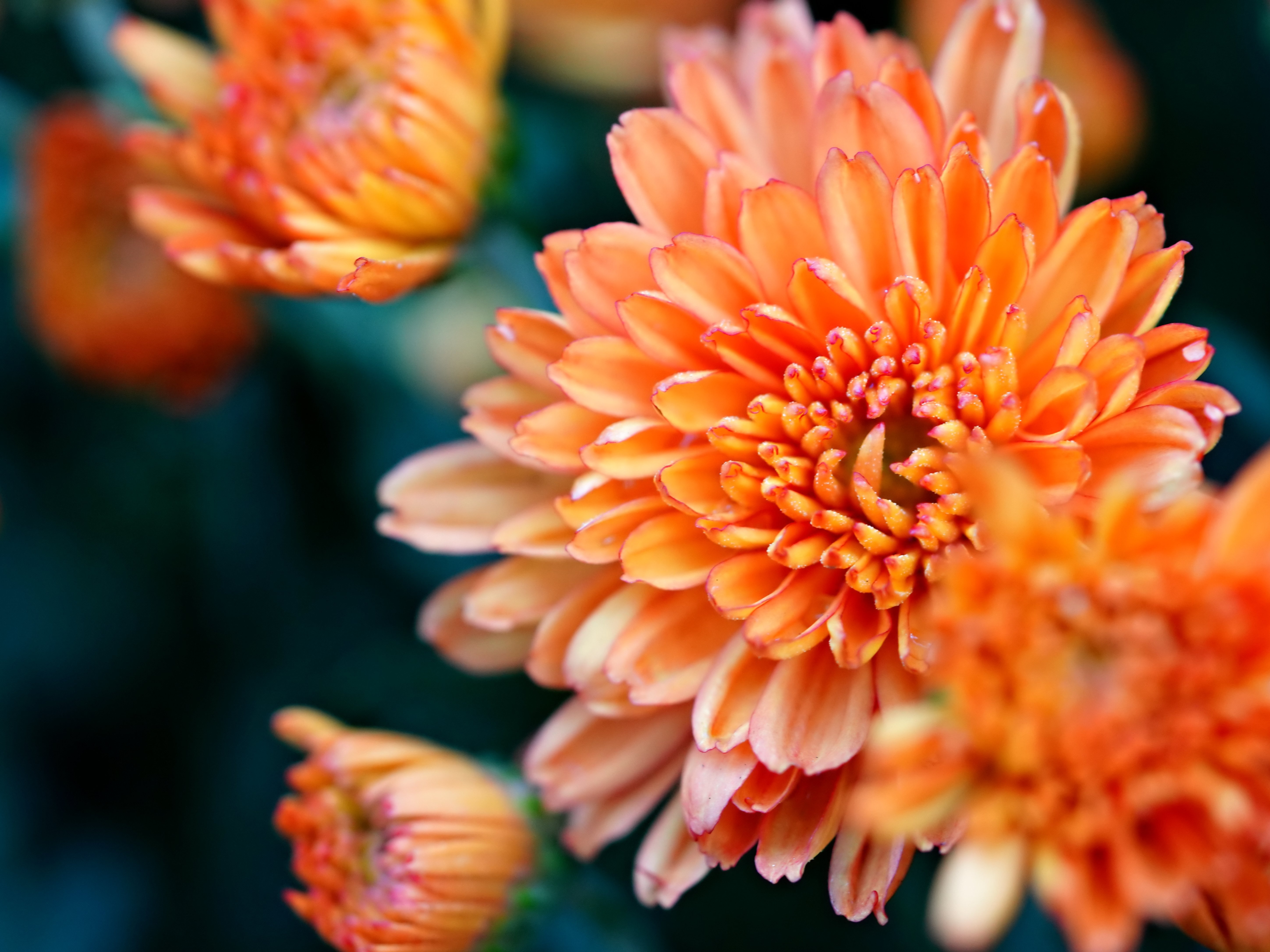 Оранжевые хризантемы на ветке крупным планом - 5797x4348