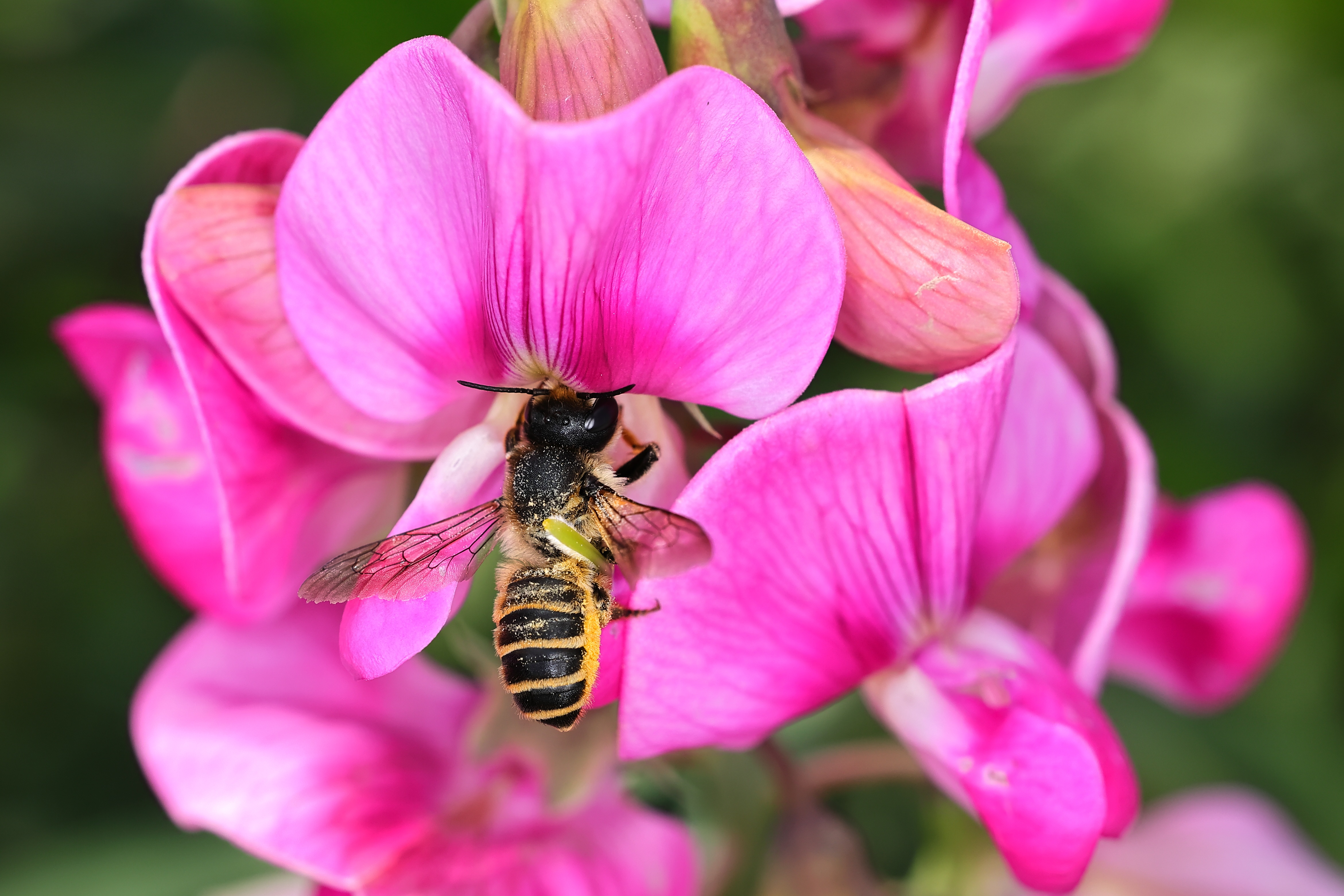 Розовые цветы с пчелой крупным планом - 4683x3122
