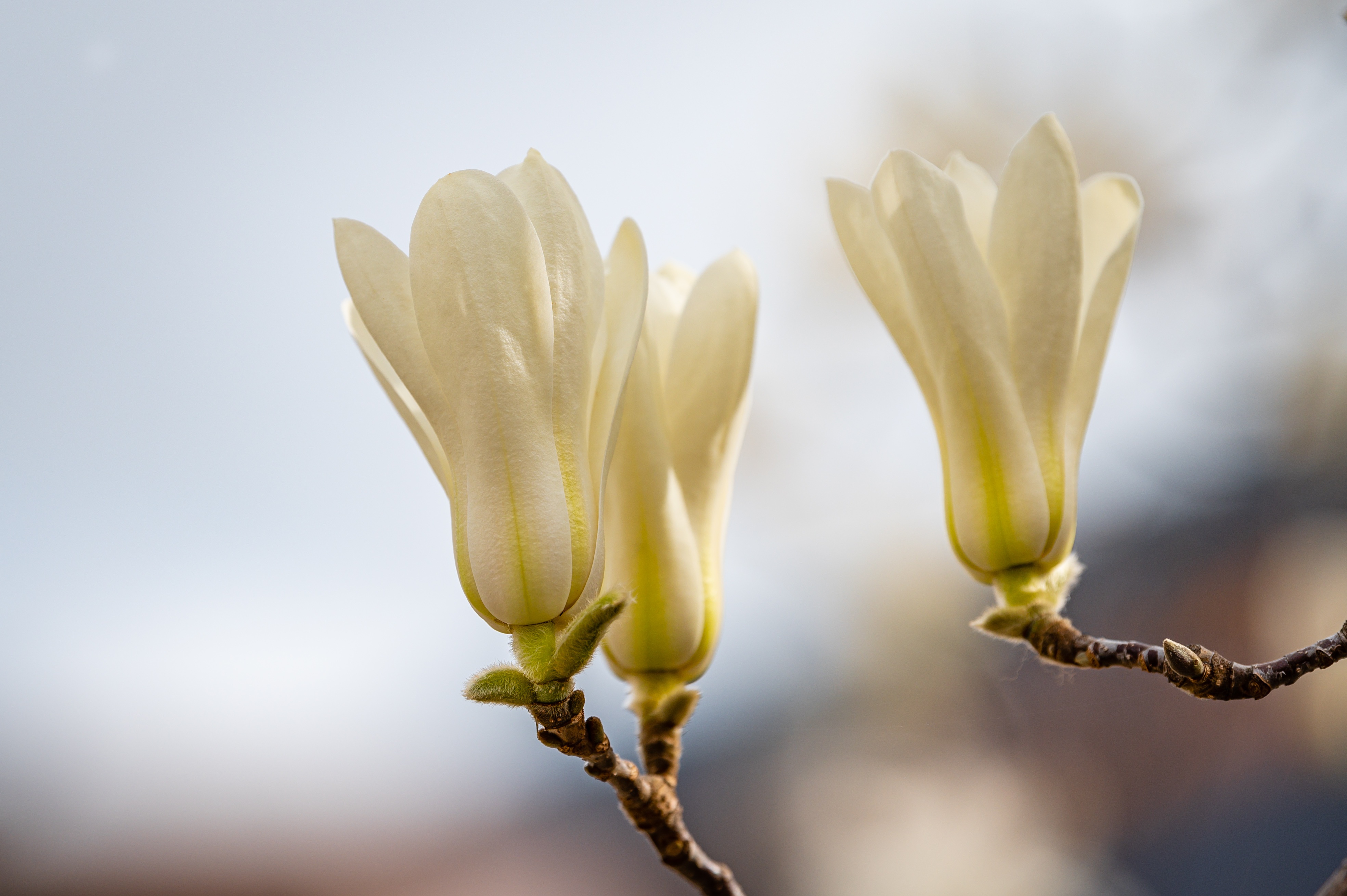 Белые цветы магнолии на ветках крупным планом - 3937x2619