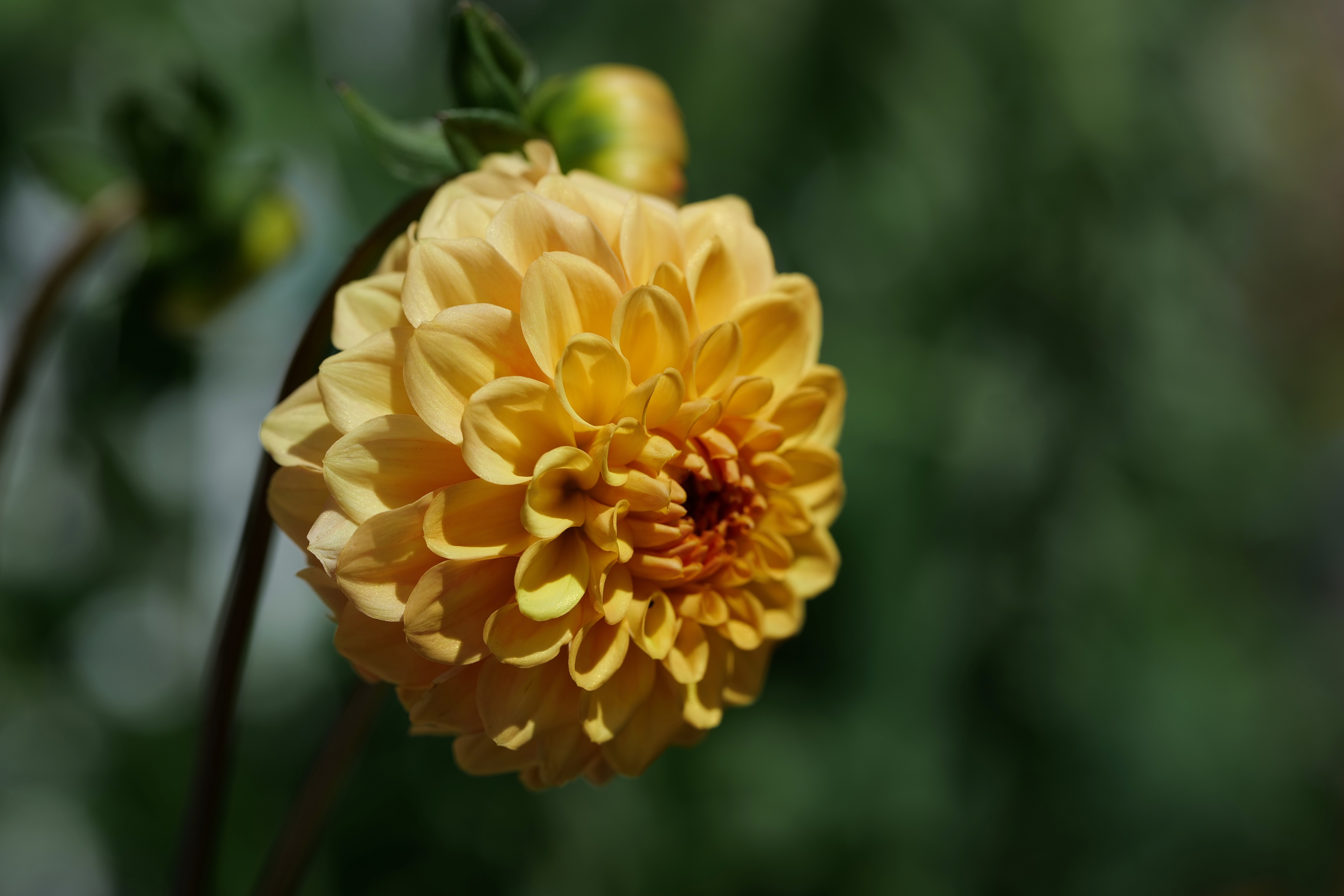 Желтый крупный цветок георгин вблизи - 5551x3701