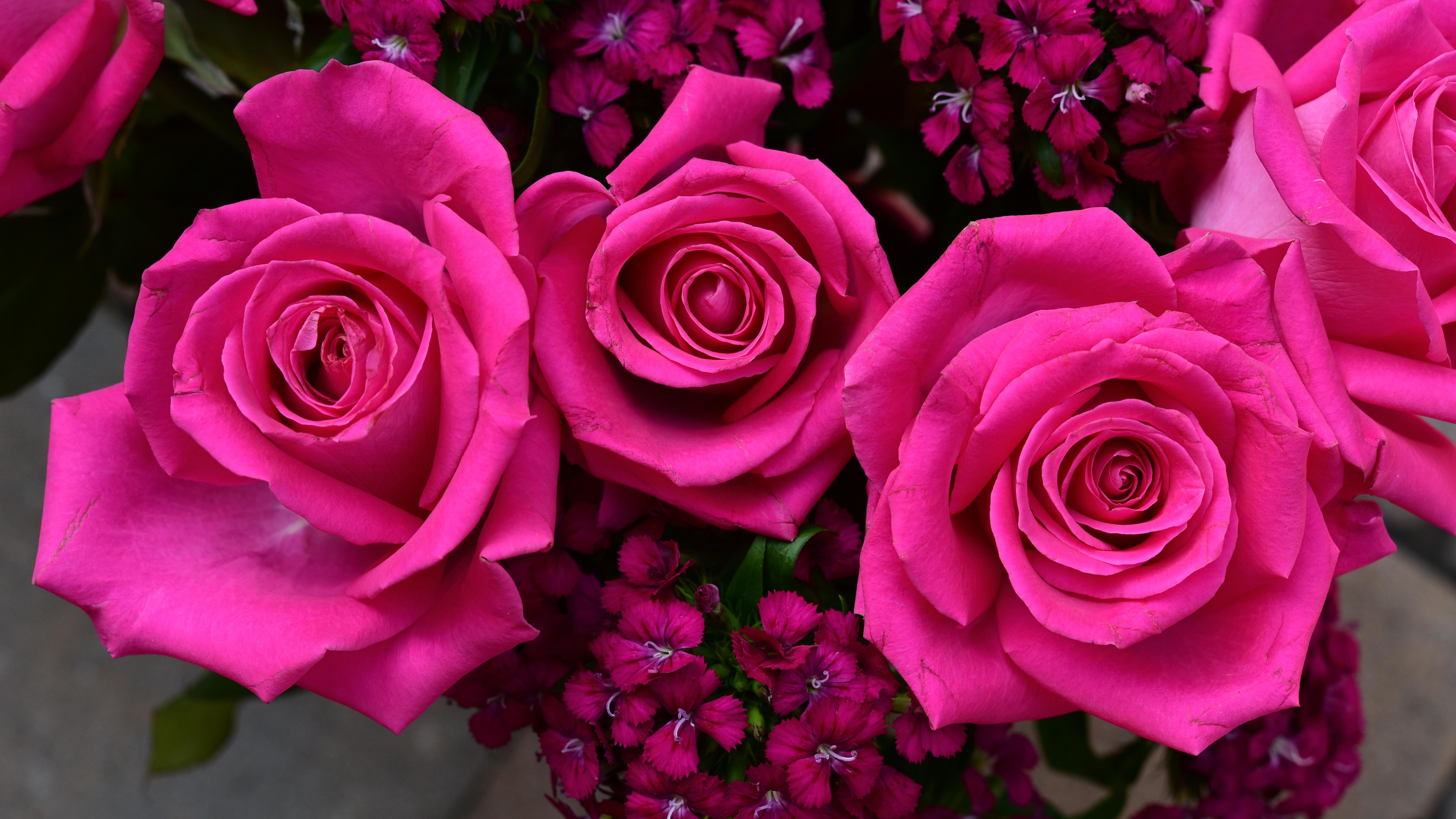 Букет розовых роз с гвоздикой - 5599x3150