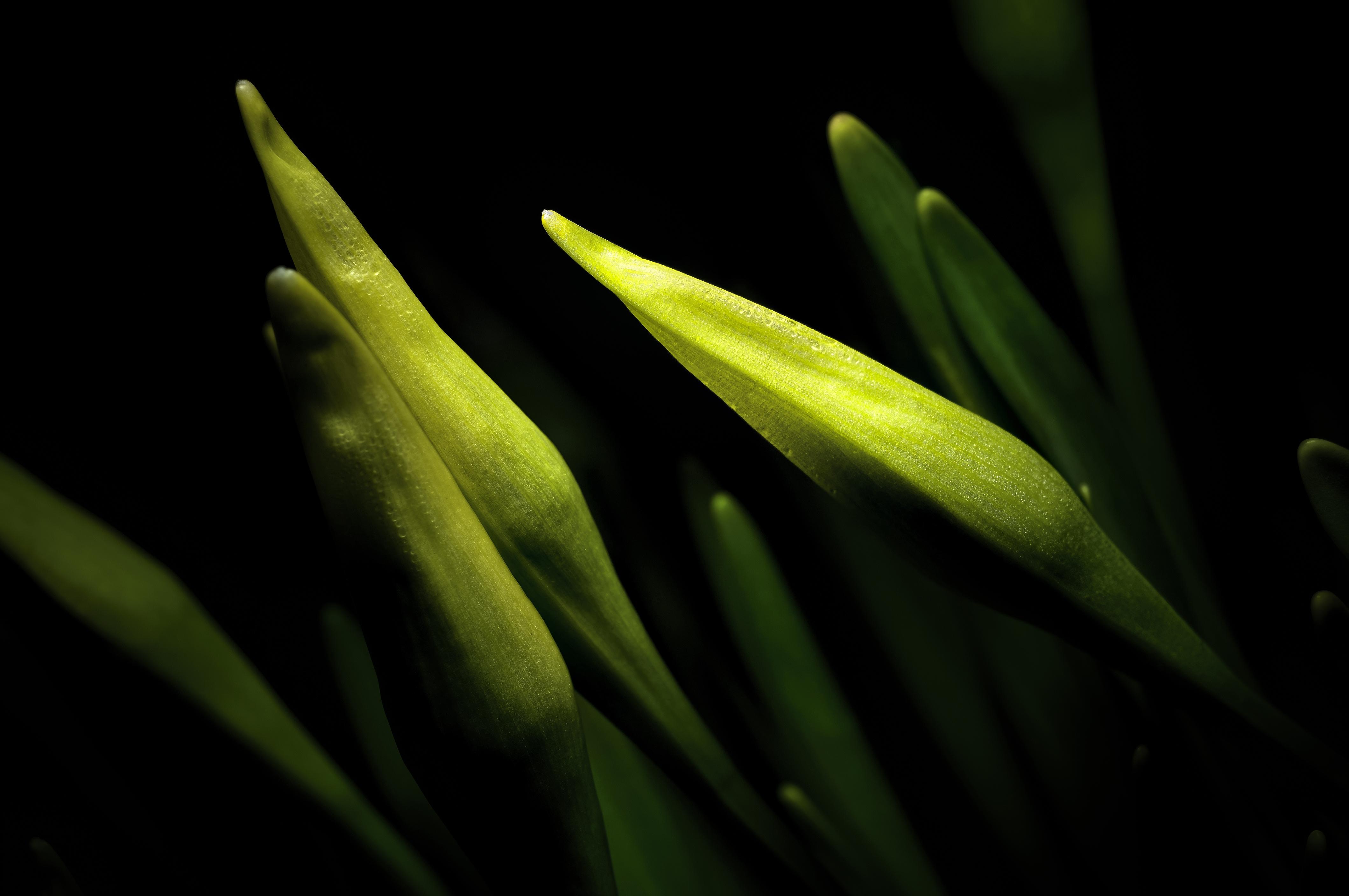 Бутоны нарциссов на черном фоне - 4238x2815