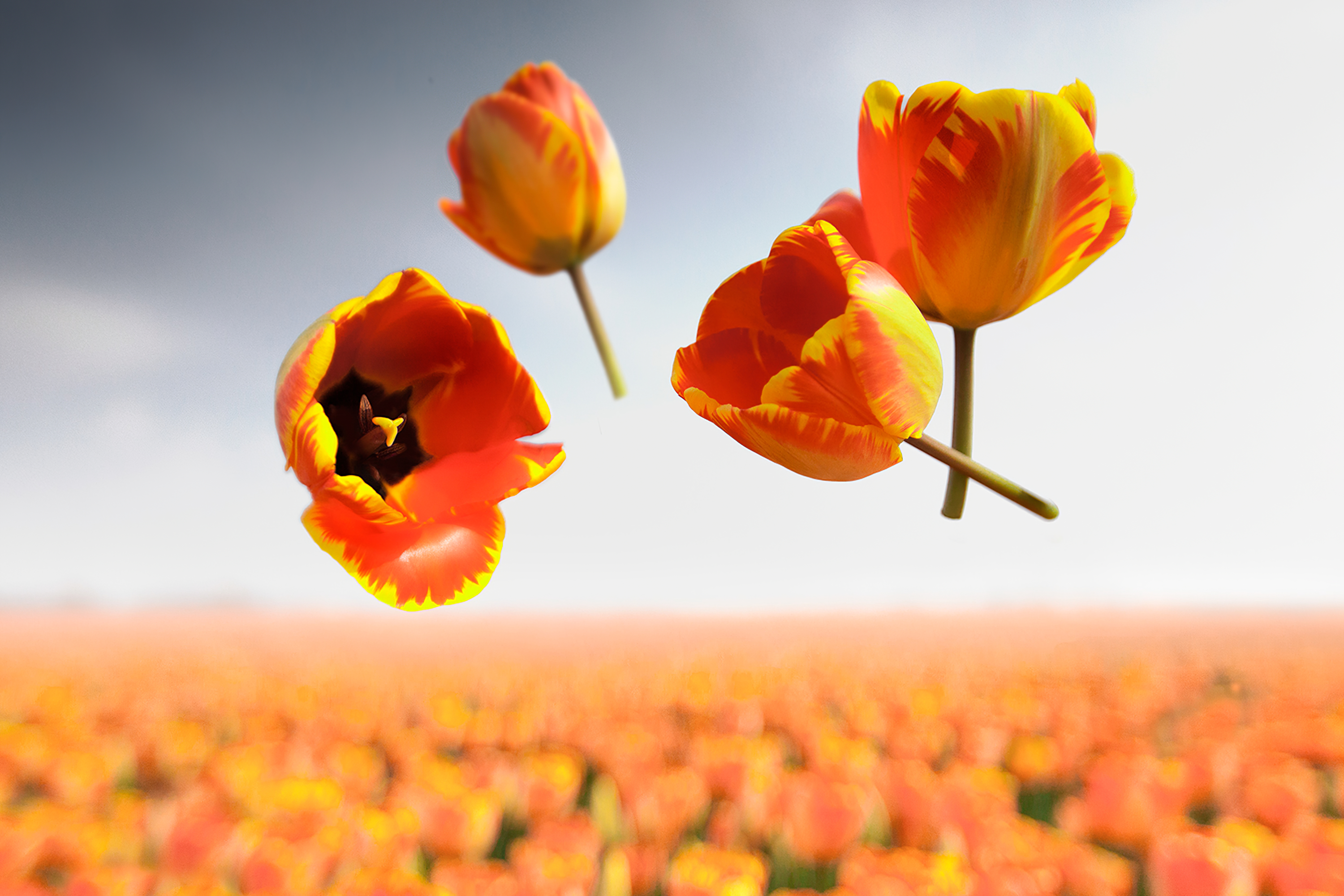 Сорванные цветы тюльпана в воздухе - 3000x2000